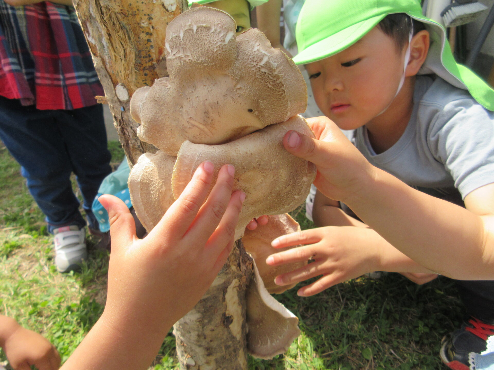 ・いつも食べているたけのこ、きのこがどうやって生長しているのかどうやってお世話をするのかを体験する中で、驚きや発見する姿がありました。