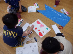 作りたいこいのぼりのグループにわかれ、色を決めたりして協力してつくりました。