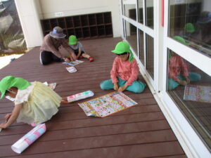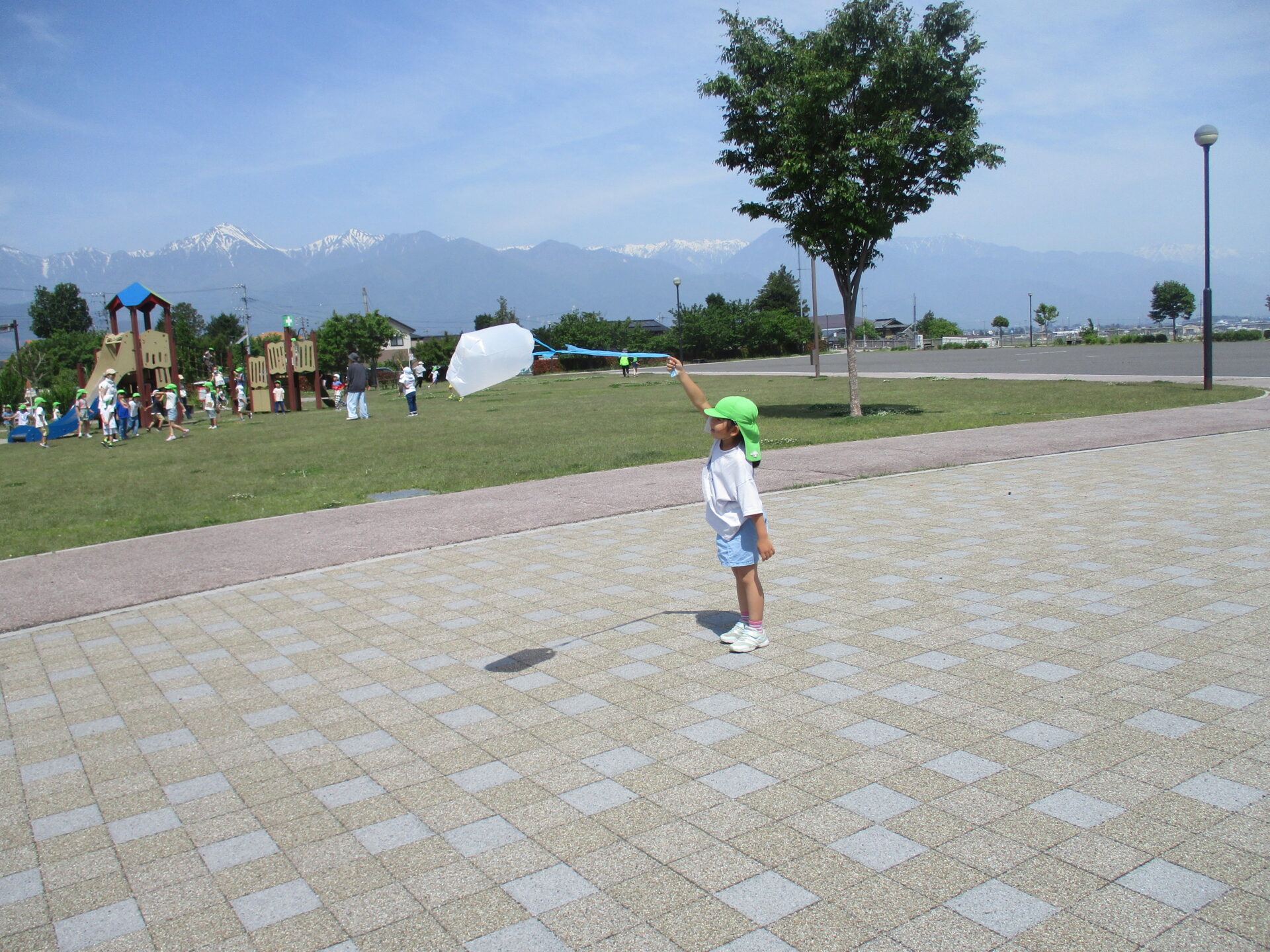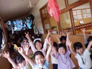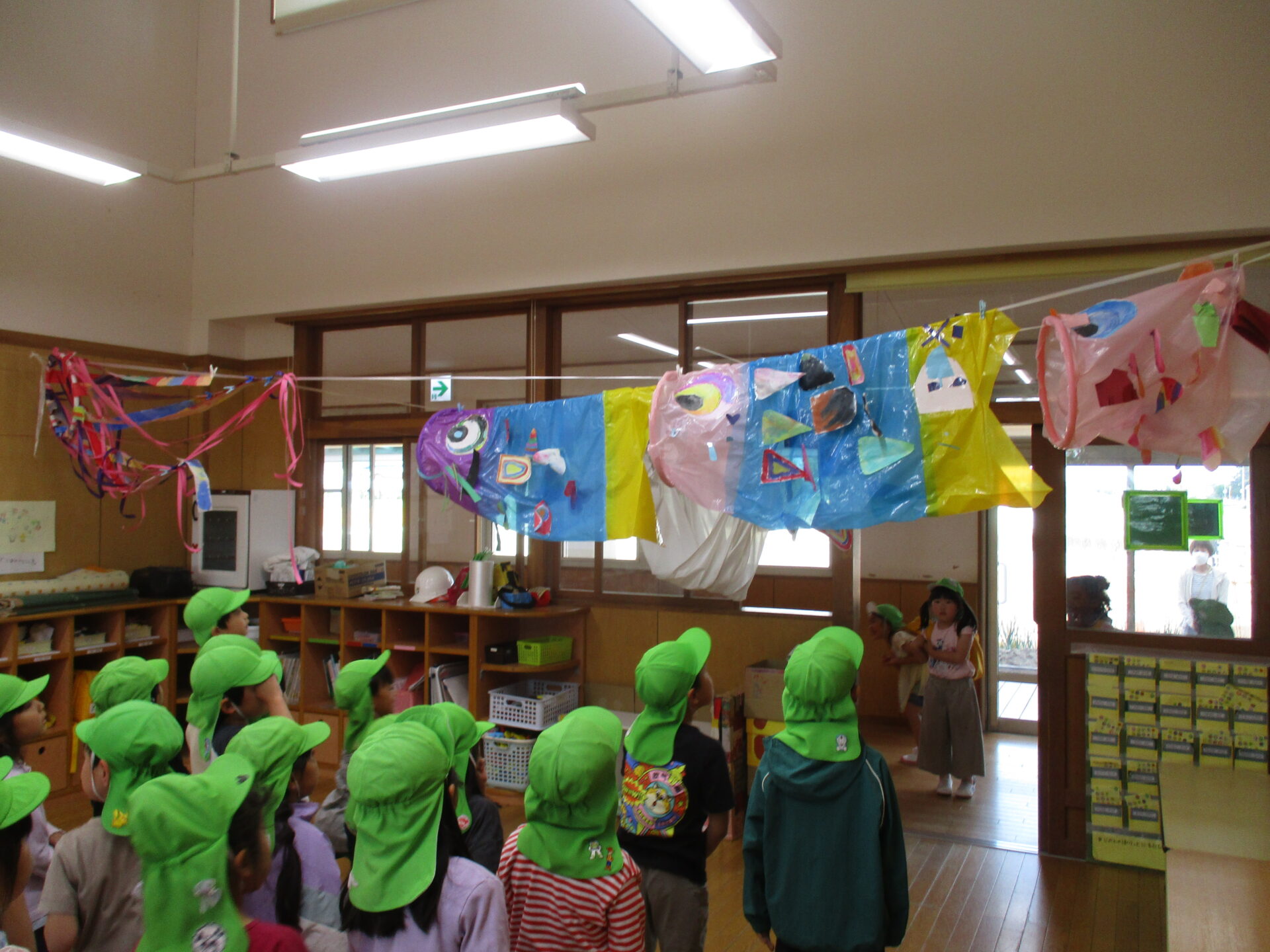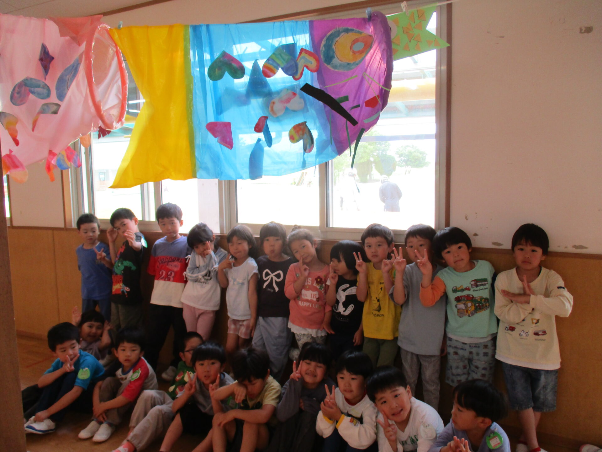 ”風”という身近な自然現象を少し意識し遊びに取り入れることで様々な気づきや学びがあった子ども達。その学びが遊び(こいのぼりづくり)の中で生かされ、友だちと協力してつくる中で、喜びや自信になったのではと思います。