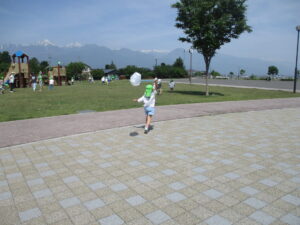風がピューピュー吹くある日、防災公園へお散歩にいきました。