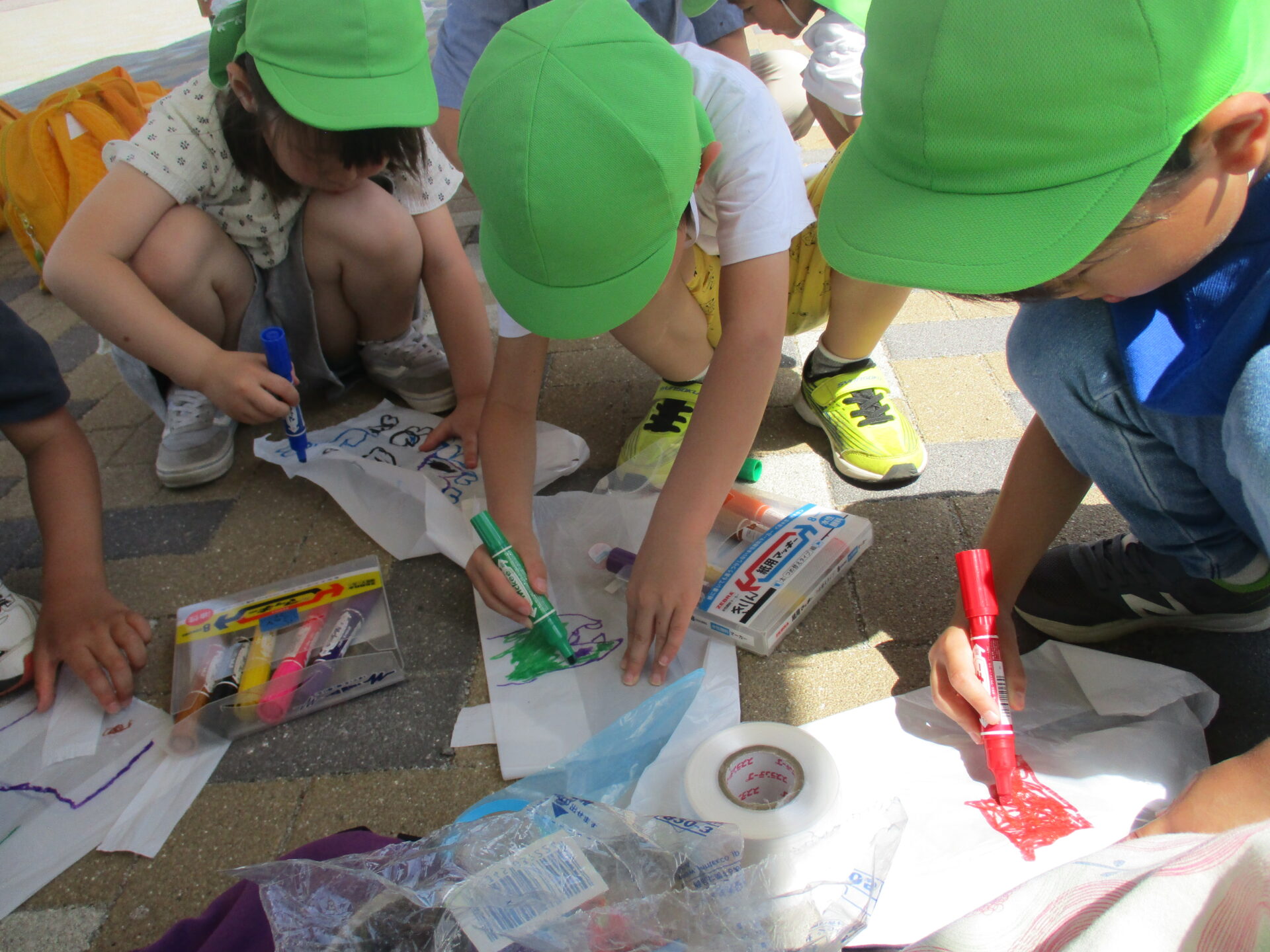 風あそびやこいのぼりづくりで色々な気づきを得ると、今度は友だちと協力して大型こいのぼりづくりに挑戦!!