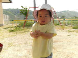 その後の外遊びでも泥のよもぎ団子をこねているお友達がいました!