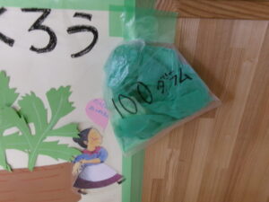 目標の600gを目で見てわかることで意欲的な子どもたち。