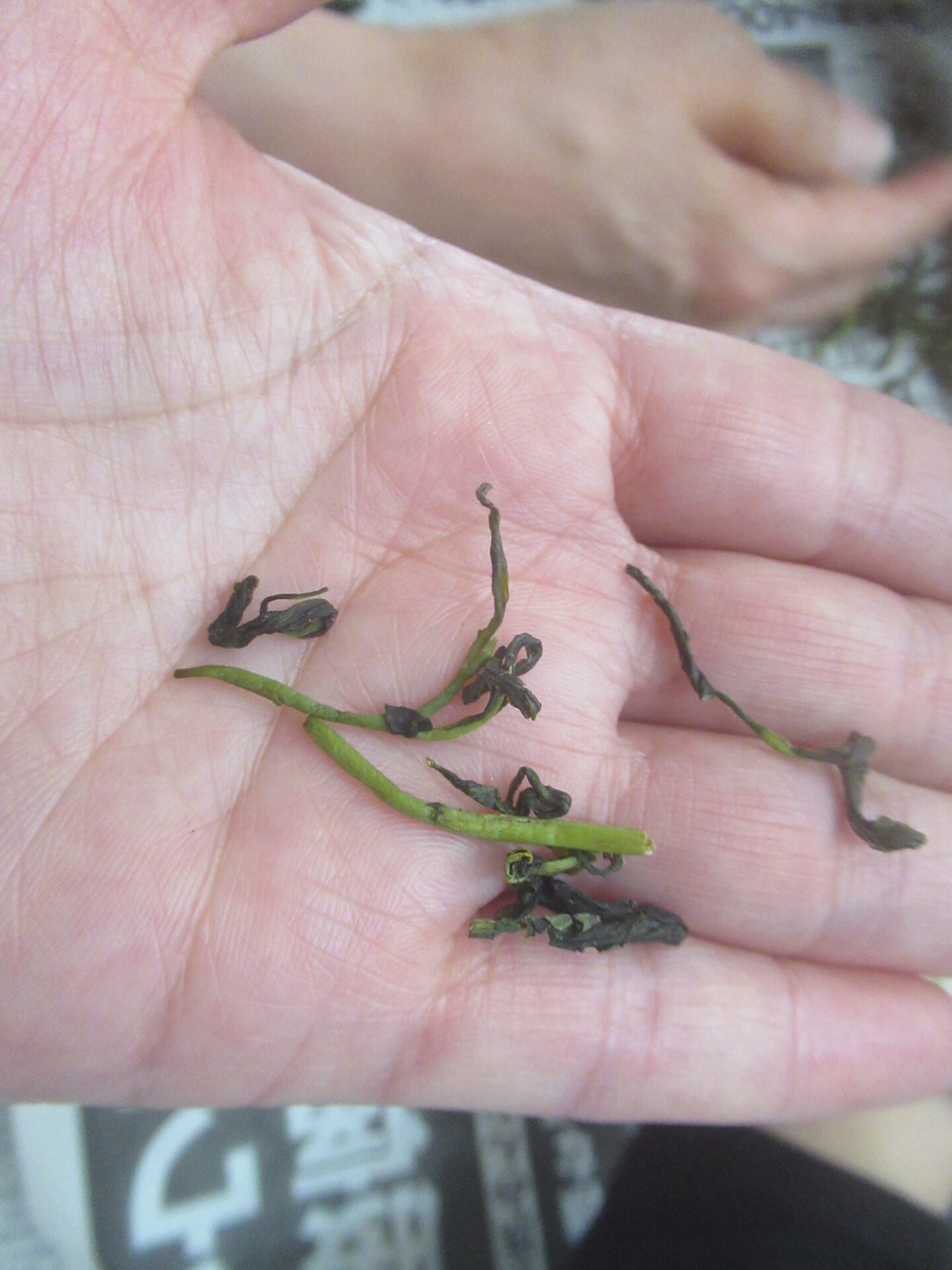 岡井さんがお茶の葉を手でもむだけで、指の間から「パラパラ」とお茶の葉が細くなって出てきます。