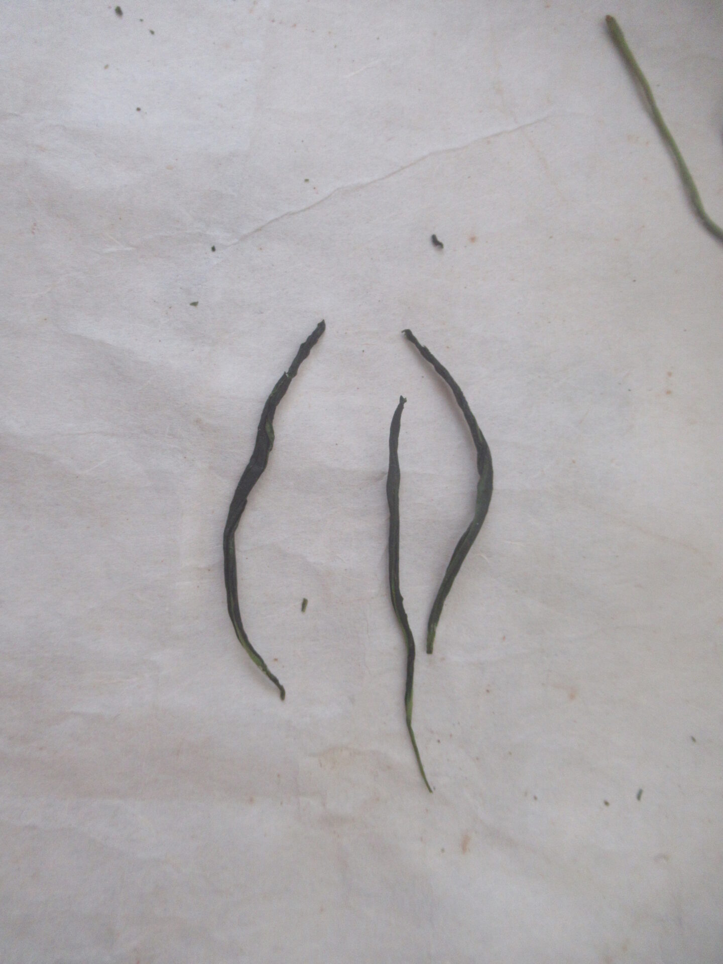 岡井名人がお茶の葉をもむと「イモムシ」にはならず、繰り返すごとにお茶の葉がバラバラと細かく針のように細くなっていくのです。