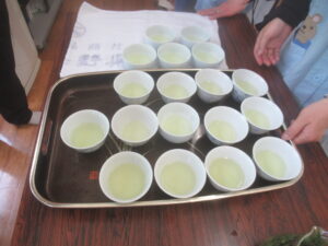 約10回の「手もみ」が終わり、いよいよお茶タイムです。
