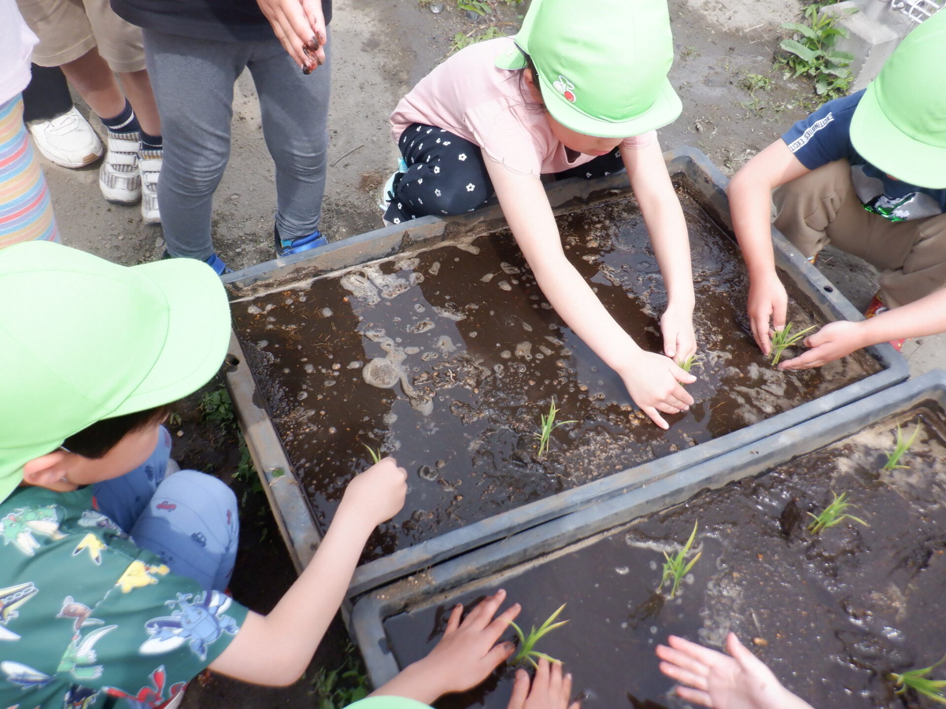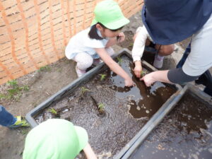 田植えをして2週間… 少しだけ大きくなった稲に子どもたちが気づきました。