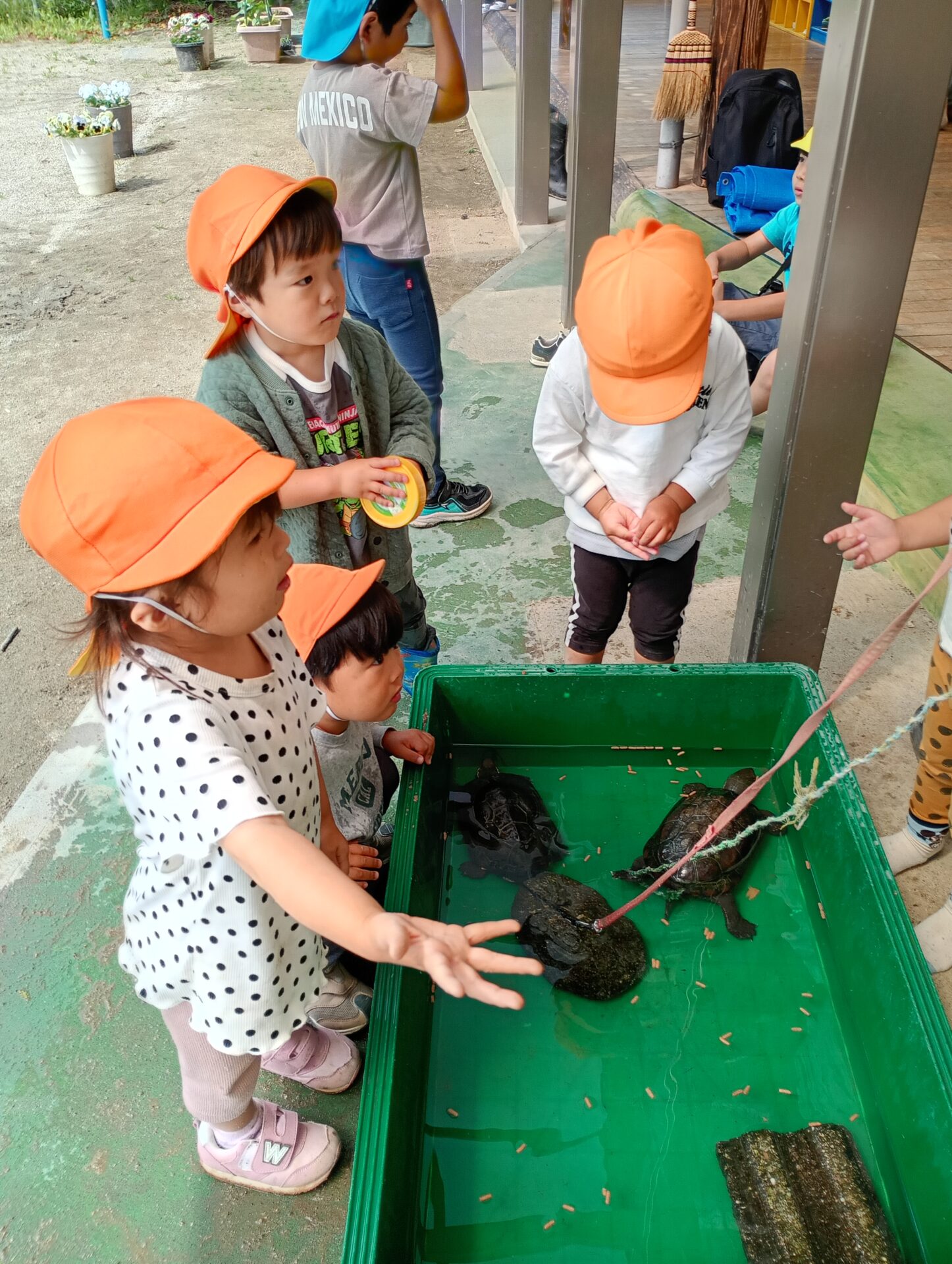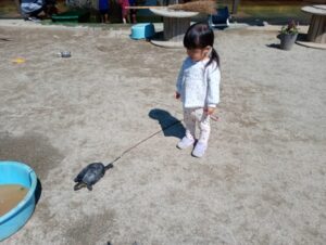 暖かくなると共に次第に活発になり、ごはんもモリモリ食べてくれるようになりました。「カメさん元気になったね。」「お腹すいてるみたい。」と、子どもたちなりに生き物の気持ちを感じ取っているようです。