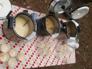 カートンドッグの作り方、火の危険さについてお話をしました。