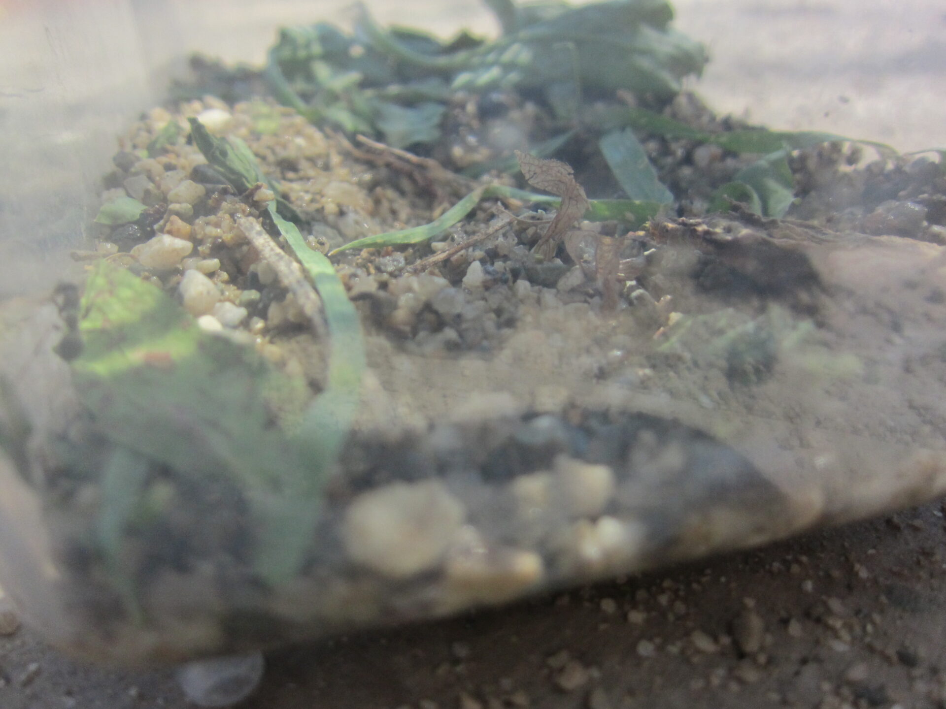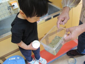 虫カゴには子ども達なりに考えた砂や葉っぱがたくさん入っています。