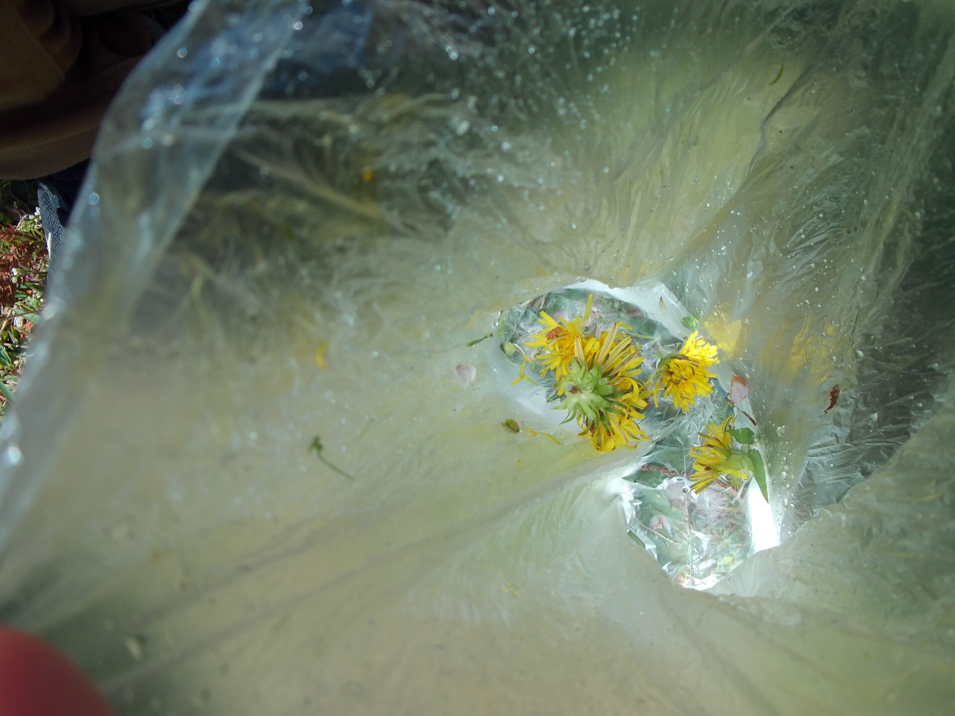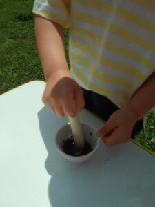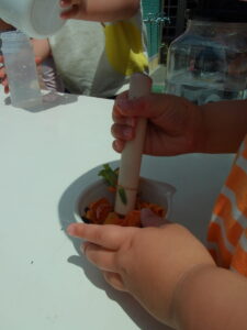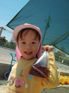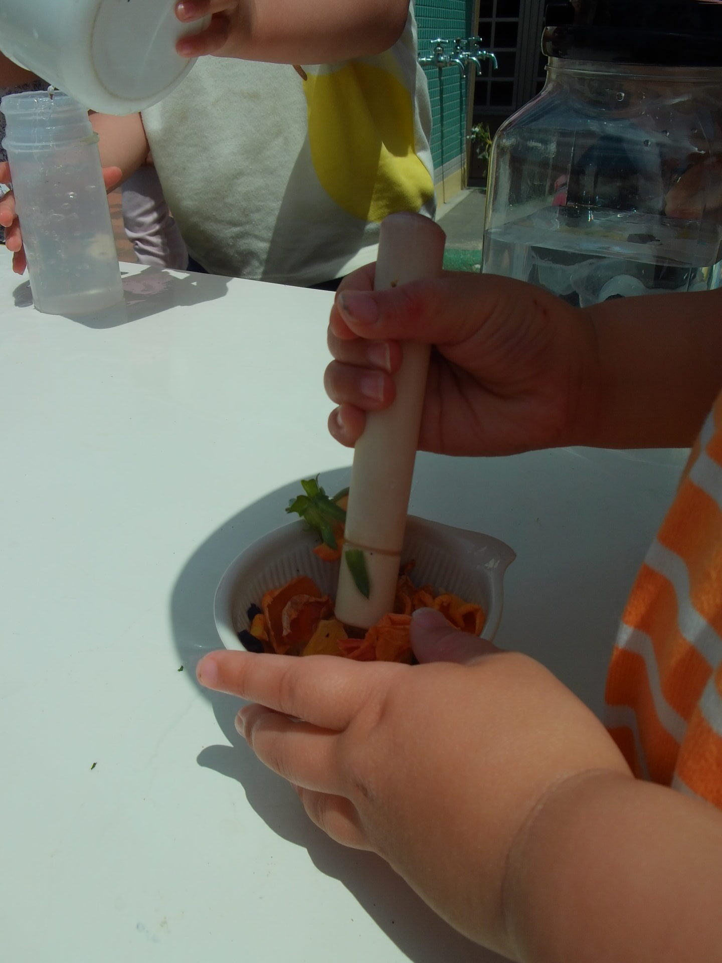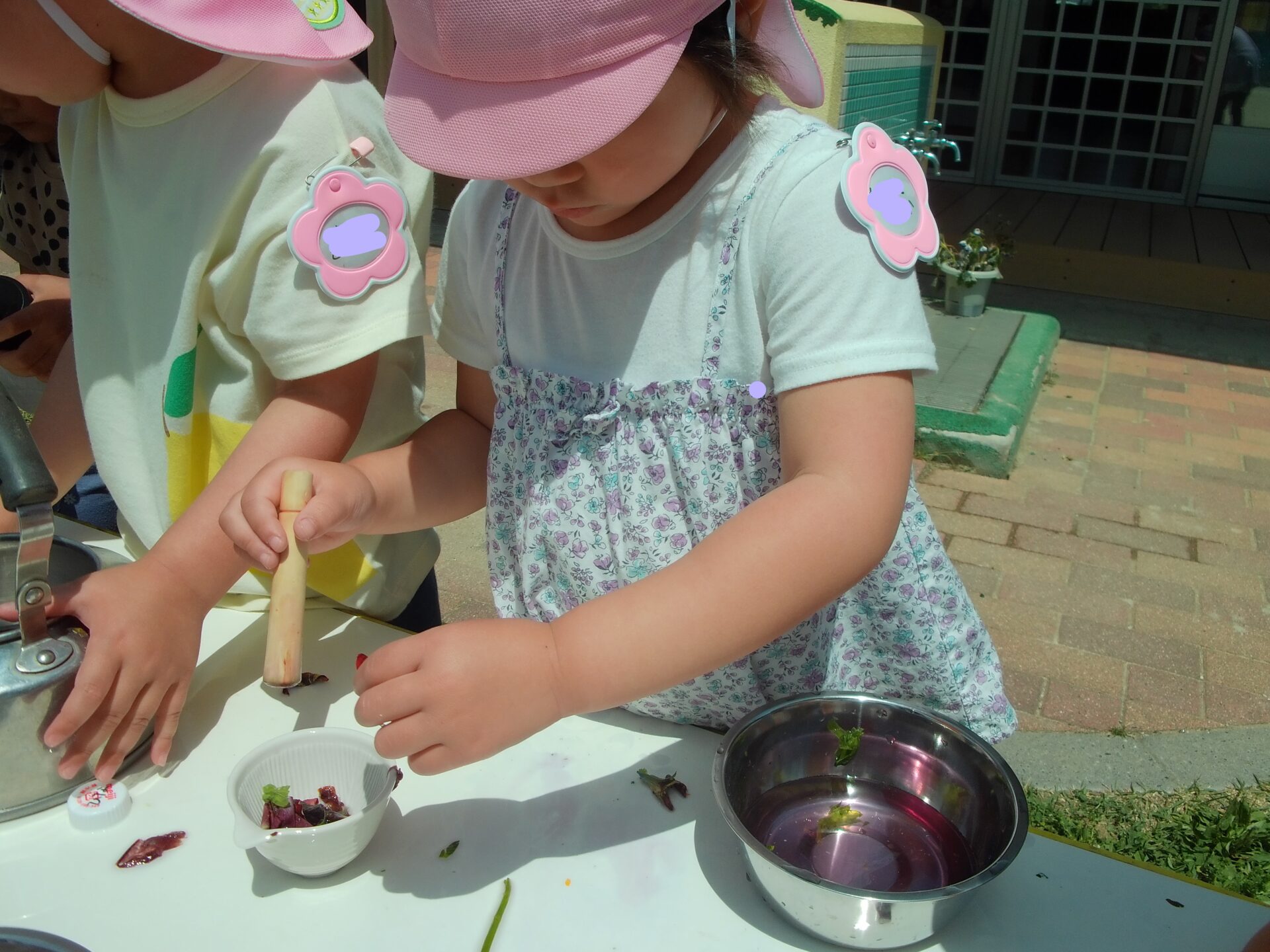 ”つぶすと色が出るよ”という新たな発見で、また遊びが広がりました