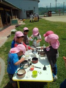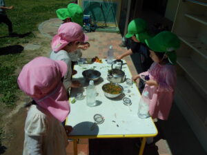 毎日目にする草花に関心を持ち、摘んだりにおいを感じたりして楽しんでいました