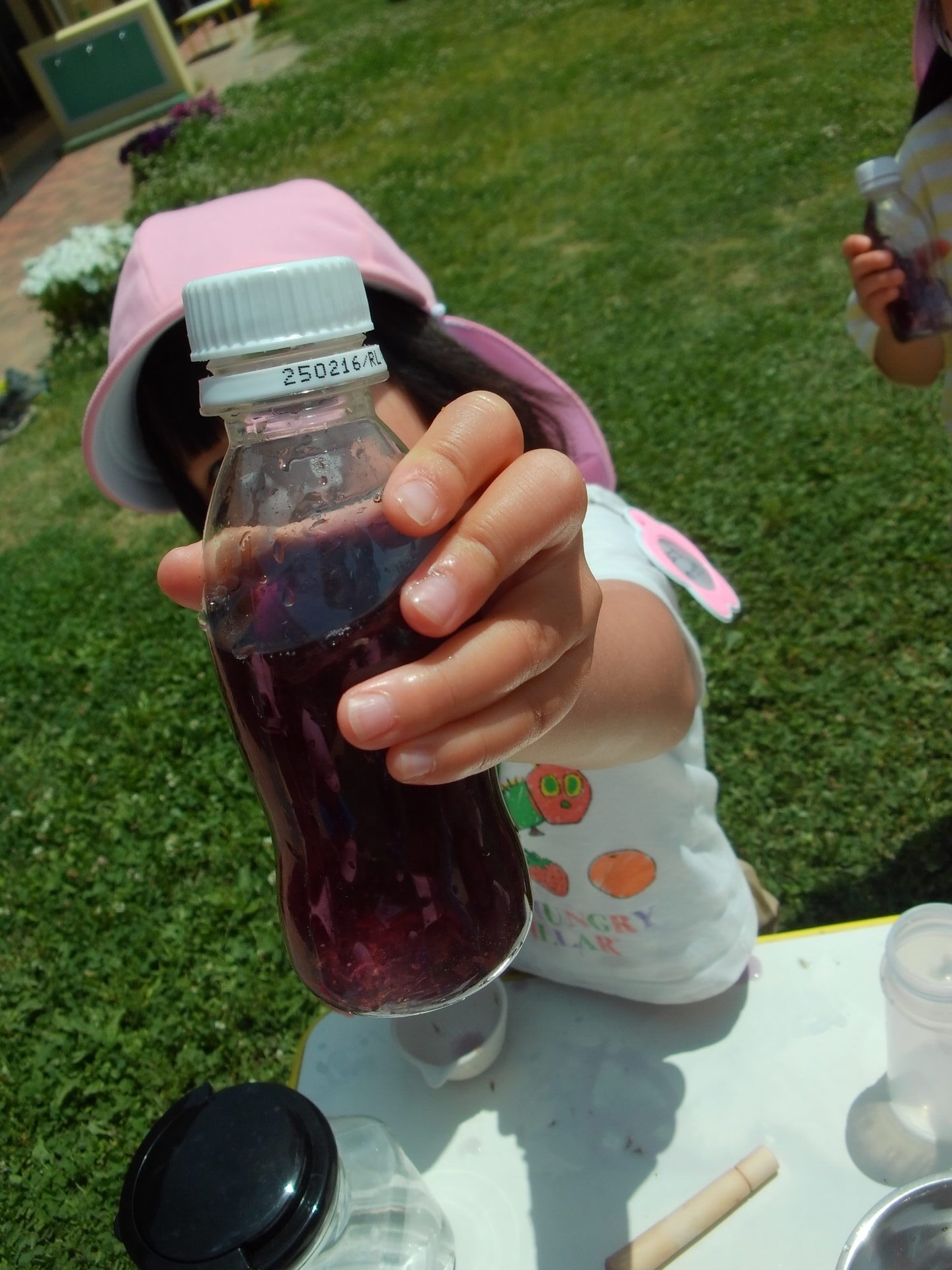 「あっ!なんか色がでてきた」 「ジュースだ」