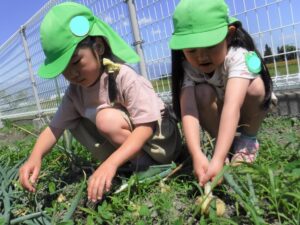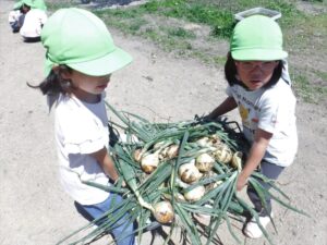 年中さんの時に植えた玉ねぎ。いよいよ収穫です‼