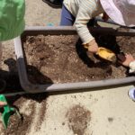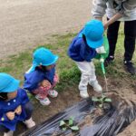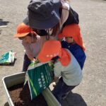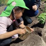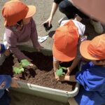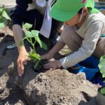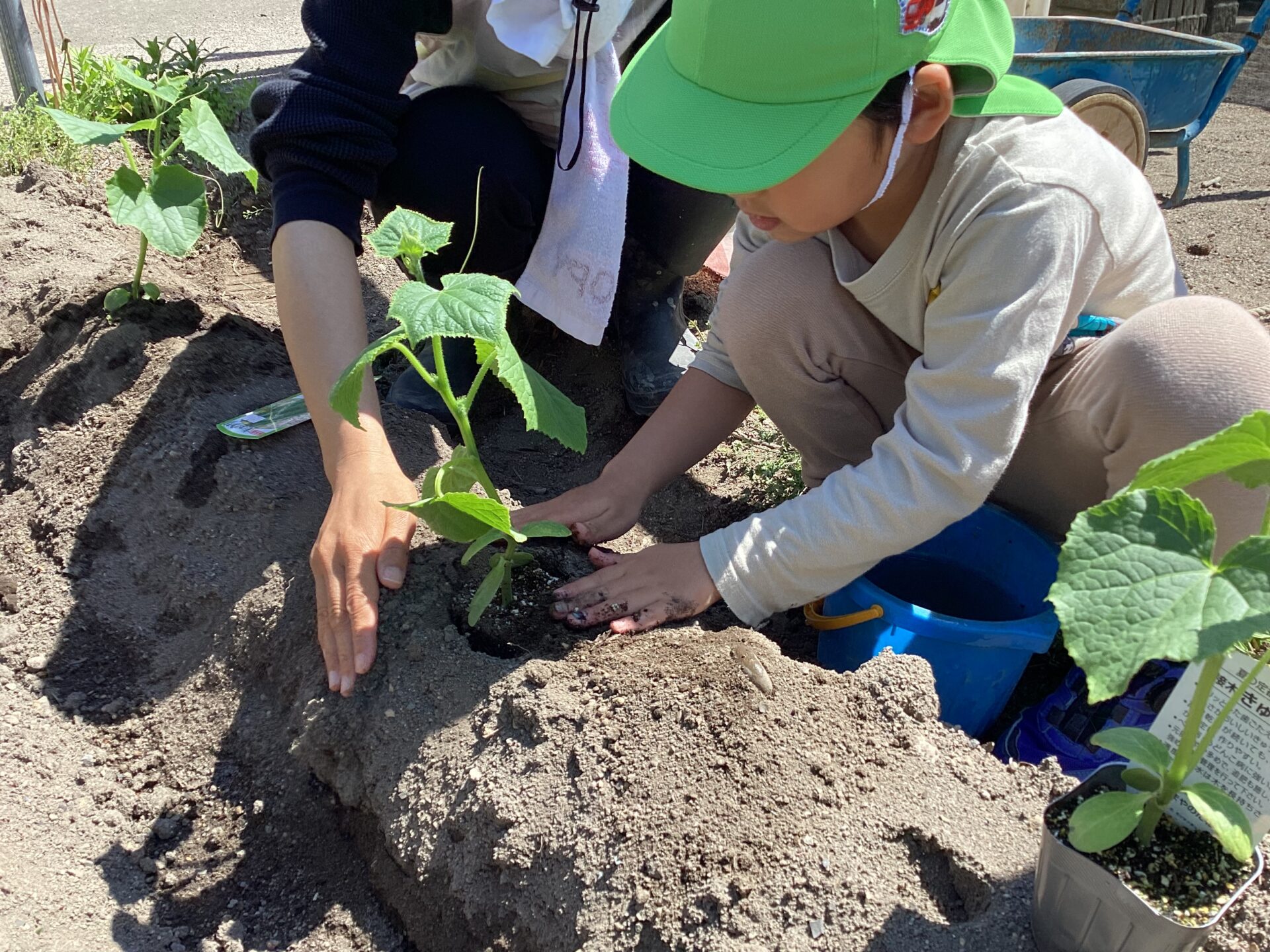 ・今までの畑活動の経験を活かし、「こうやって苗をもつんだよね」と自分たちで考える姿があった。