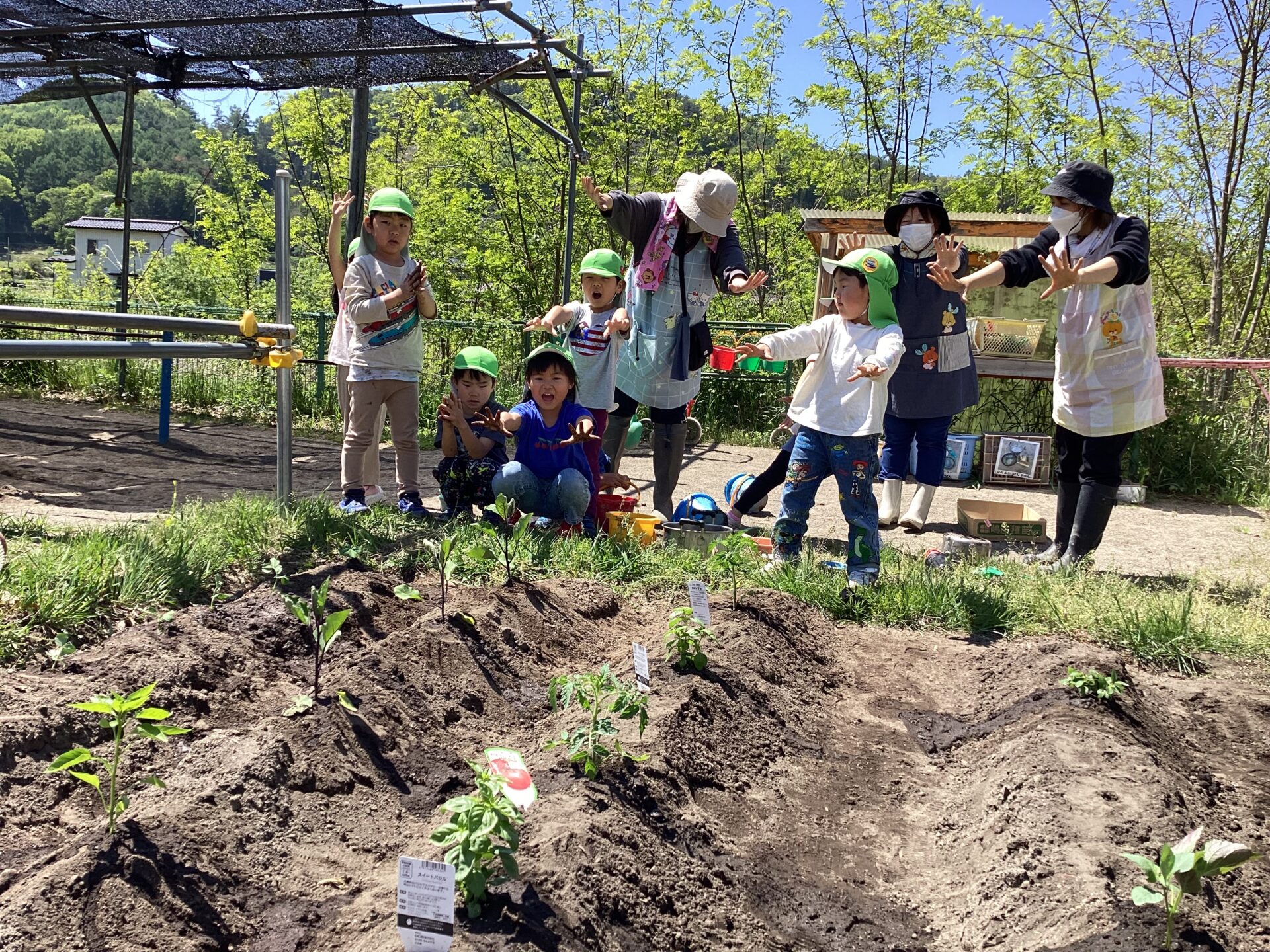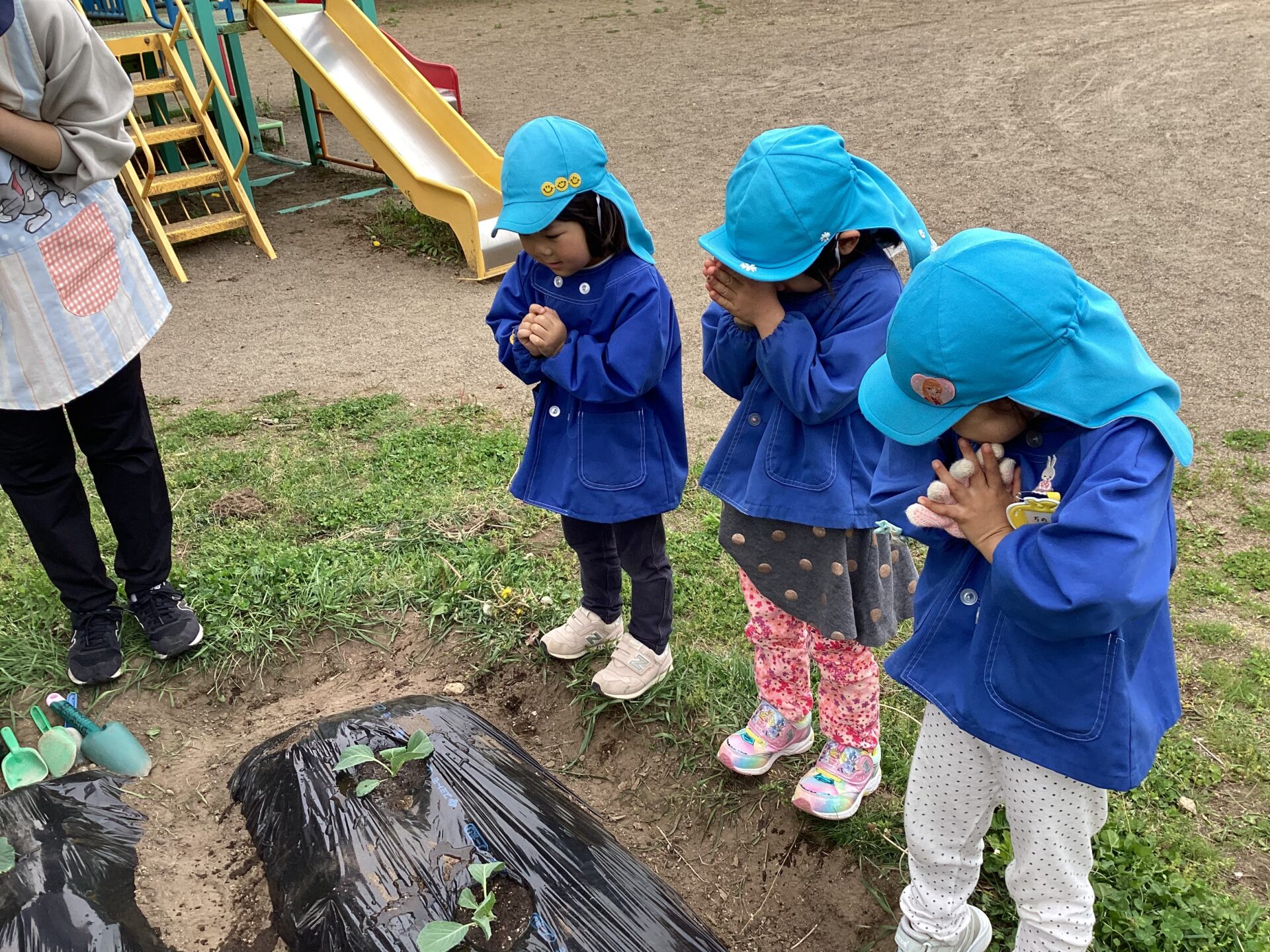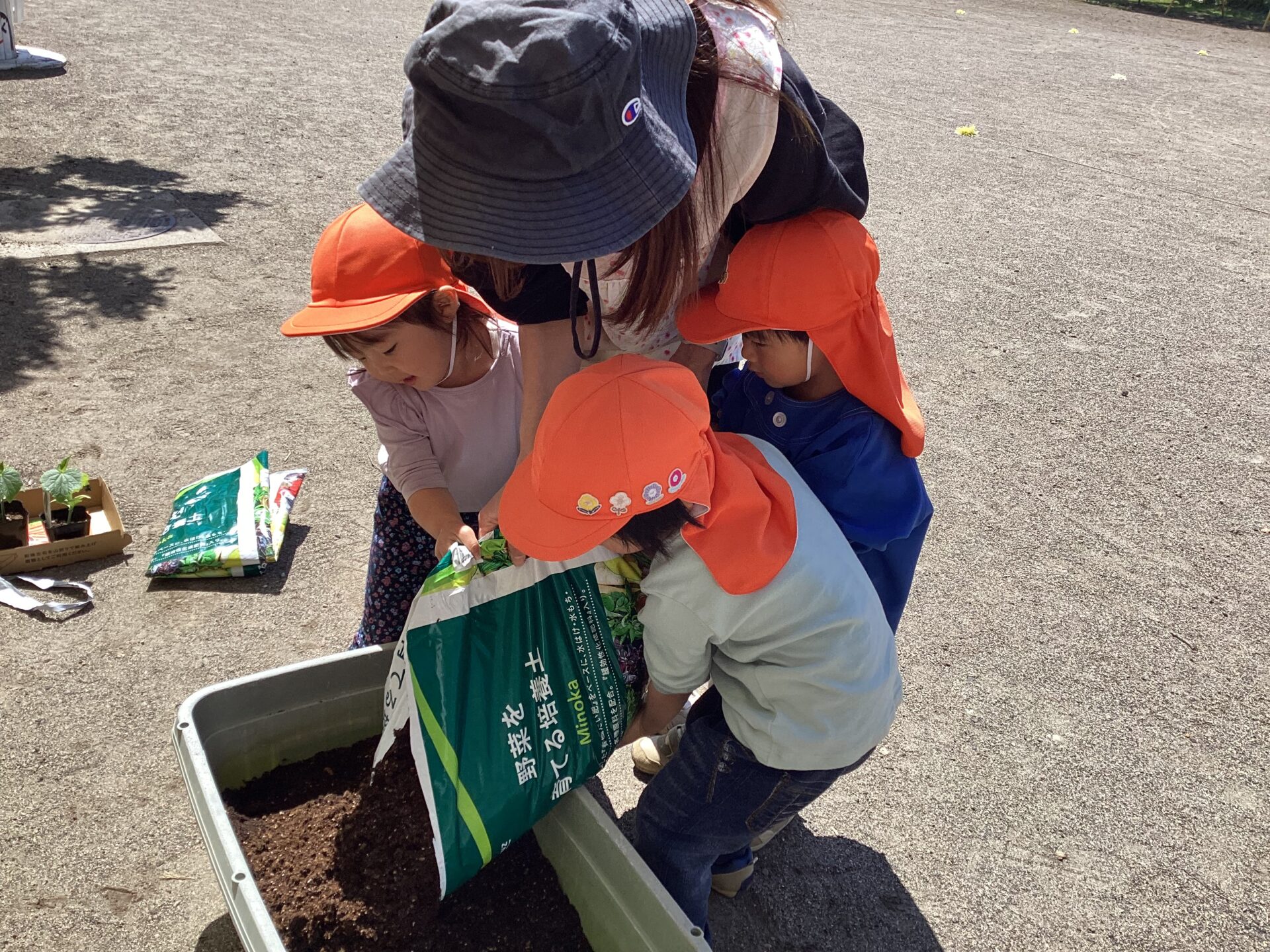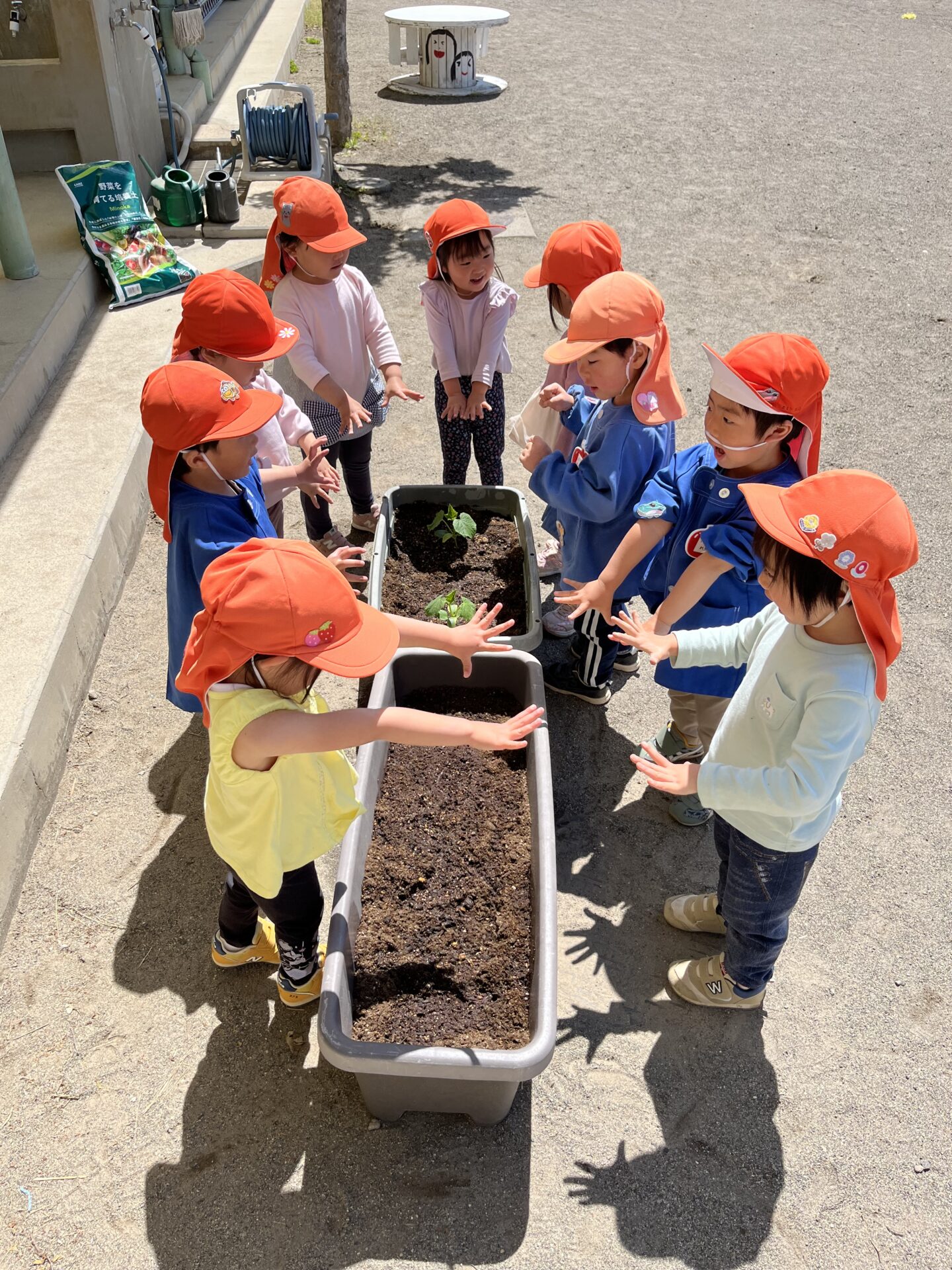 ・水をあげたり、野菜の様子をみたりなどする機会を通して、生長を楽しみにするとともに、少しずつ変化していく野菜の様子に気づいてほしい。