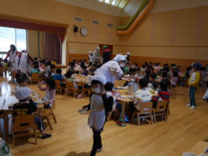 さあ、後は給食の先生にお願いをしてみんなは給食の準備に取り掛かりました。