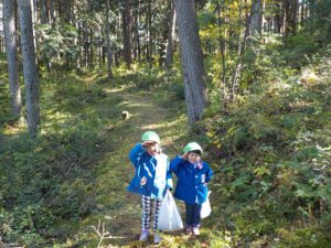 「森の神様、森の中で遊ばせていただきます」と挨拶をしてからさあ!森の探検に出発!