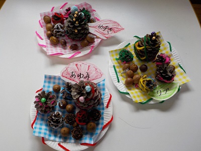 ・自分たちで拾ってきた木の実を使って、工夫しながら作ることの楽しさや完成した時の喜びを