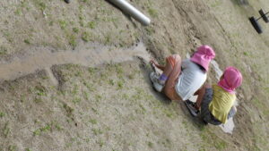 ・トヨと塩ビパイプを水が流れるかどうか確かめるのに、「ん、流れた」の一言!思いが詰まっている一言のように感じました。