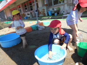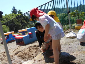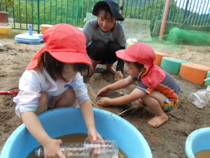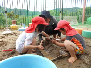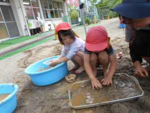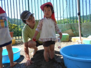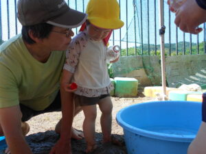 体も心も解放してのどろんこ遊びの中で、様々な感触を味わってほしいです。
