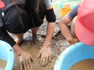 ・泥の感触は…「ざらざら」「ぶにゅぶにゅ」「ぬるぬる」