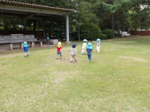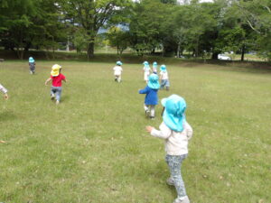 芝生の広いグランドで走って思い切り体を動かしてあそびました。