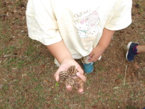 両手に抱えきれないくらい松ぼっくりを拾いました。