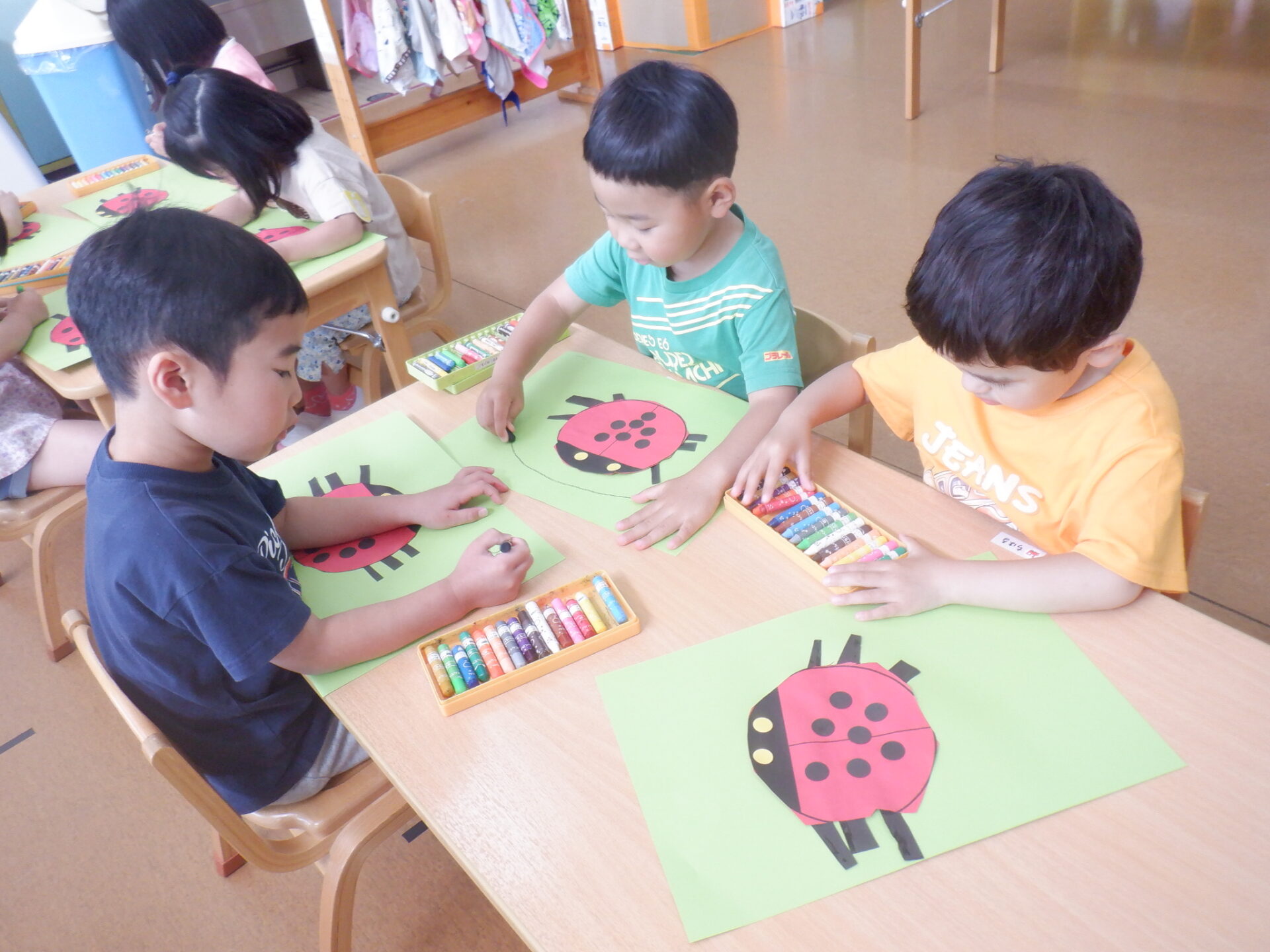 その後、クラスでテントウ虫の制作をしてみました。