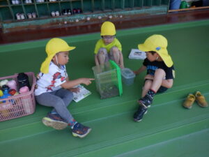 園庭の草花が育つと共に、テントウ虫やダンゴ虫など虫達の動きがが活発になり、虫好きの子どもたちは、畑や草むらに入って毎日採集を楽しんでいます。