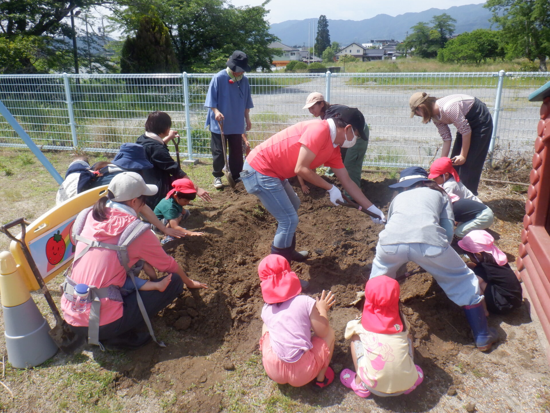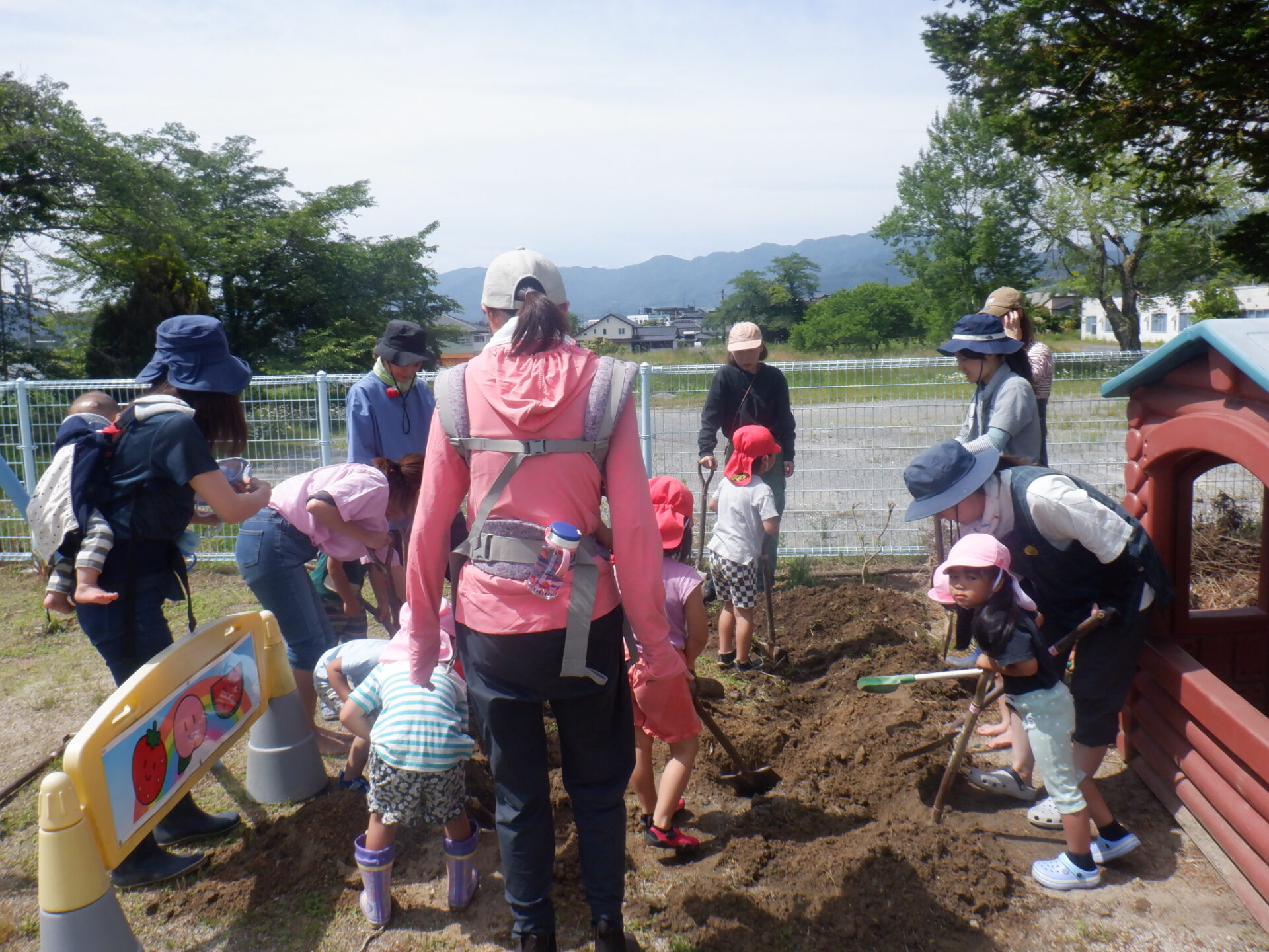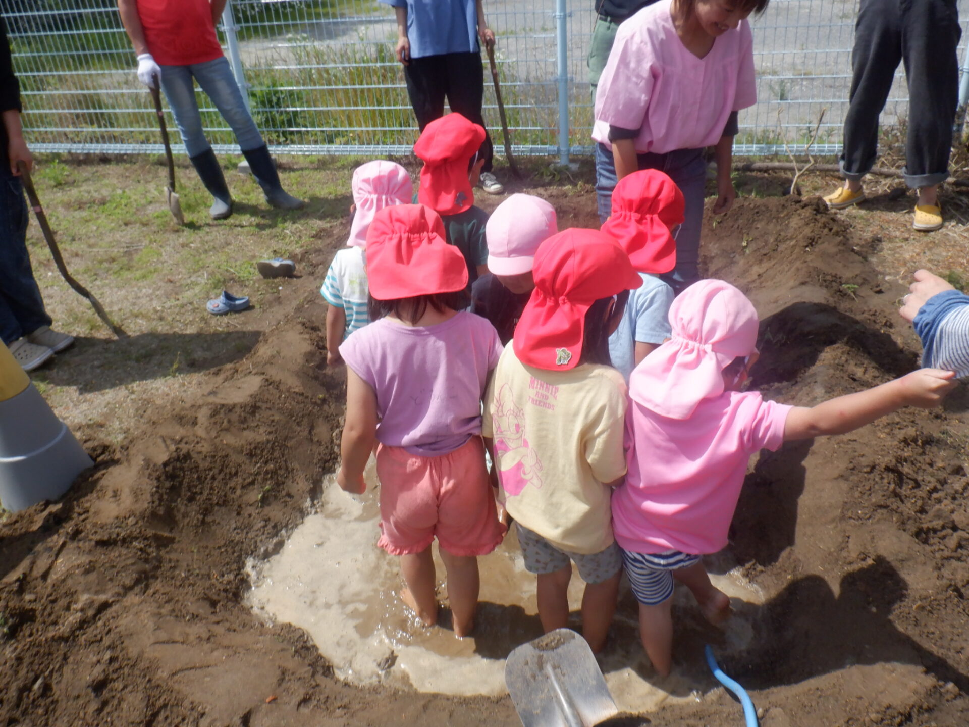 ・職員は公立各園で地域の方が作ってくださっている田んぼで田植えをしたり、稲刈りをする経験はありましたが、園庭で一から田んぼを作るのは初めてなので、土作りってどういうこと?田植えにたどり着けるのか?と不安はありますが、こども達がどんなことに興味を持つのか?どんなふうに進んでいくのか?こども達と一緒に楽しみながら進めていきたいと思います。
