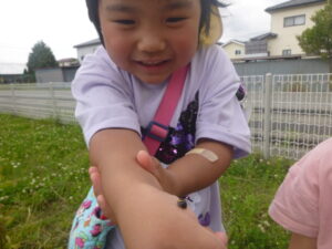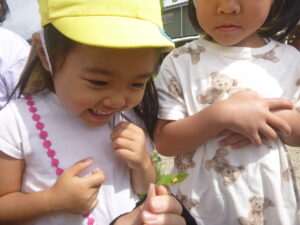 これからも園庭に遊びにくる生き物に触れ合いながら、優しい気持ちを大切にしていきたいと思います。