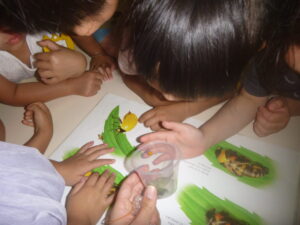 幼虫を見つけてから、毎日観察してきた子どもたち。