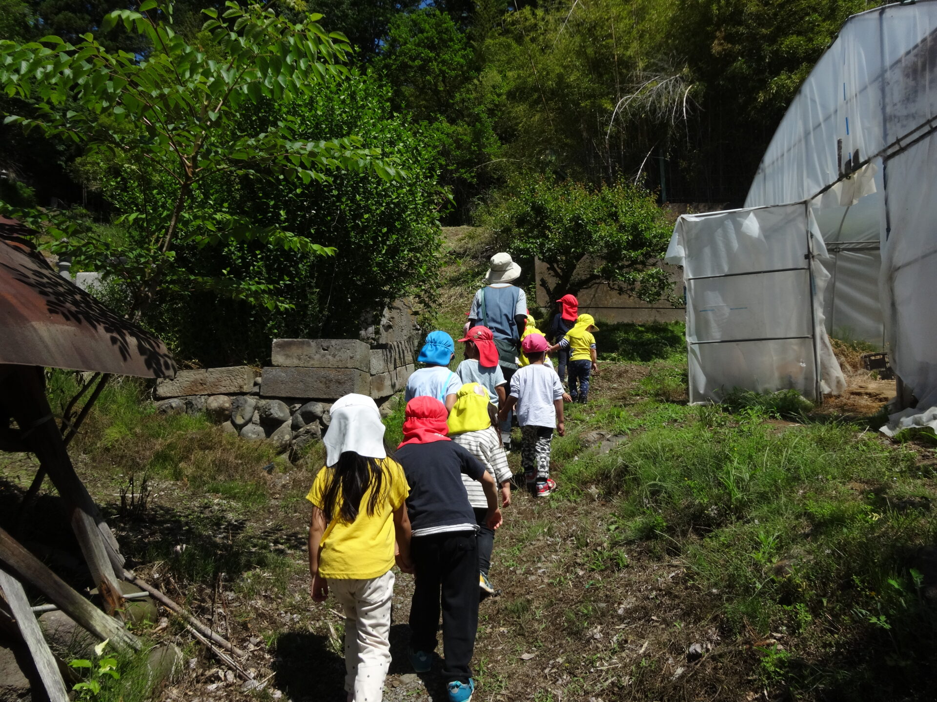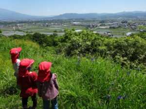3歳以上児クラスで、保育園の近くにある城山(前山城跡)へ散歩に出掛けました。