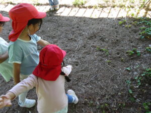 繰り返し散歩に行かせていただきながら、その時期ならではの自然に触れ、子ども達の気づきや「なんだろう!?」「面白い!」という気持ちをたくさん受け止めていければと思います。