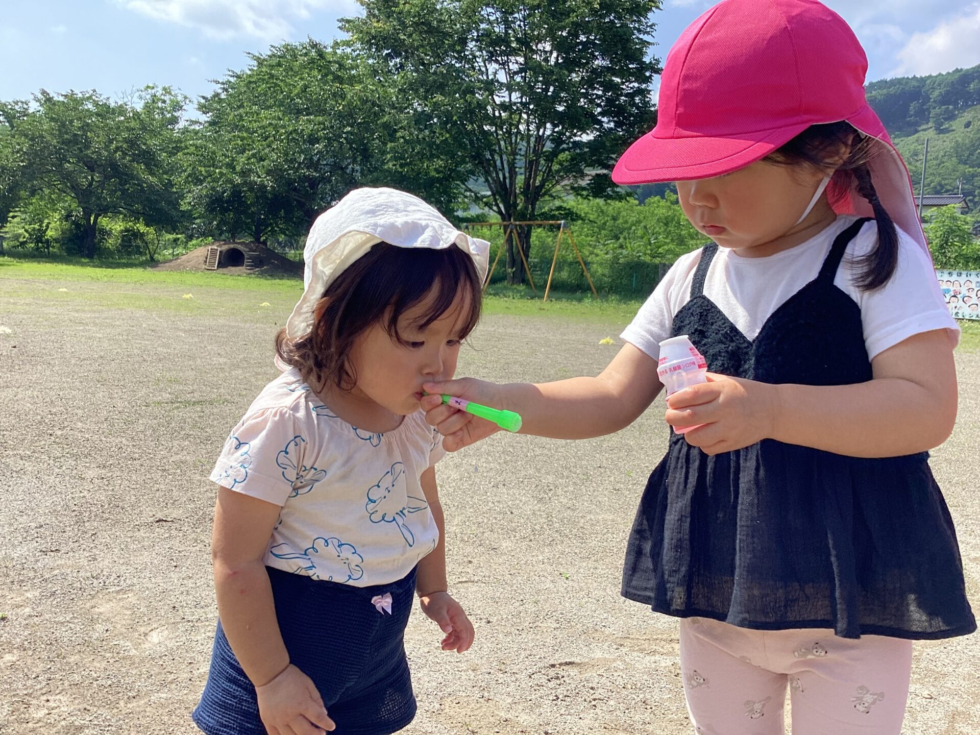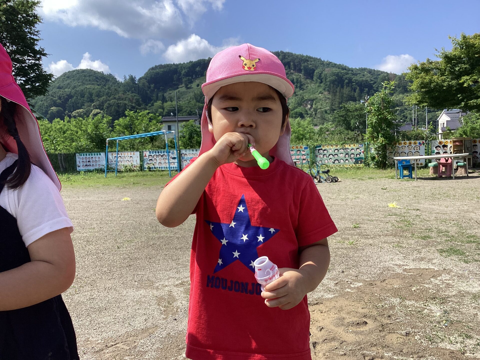 収穫の後は、ちょっとだけシャボン玉あそびをして楽しみました。