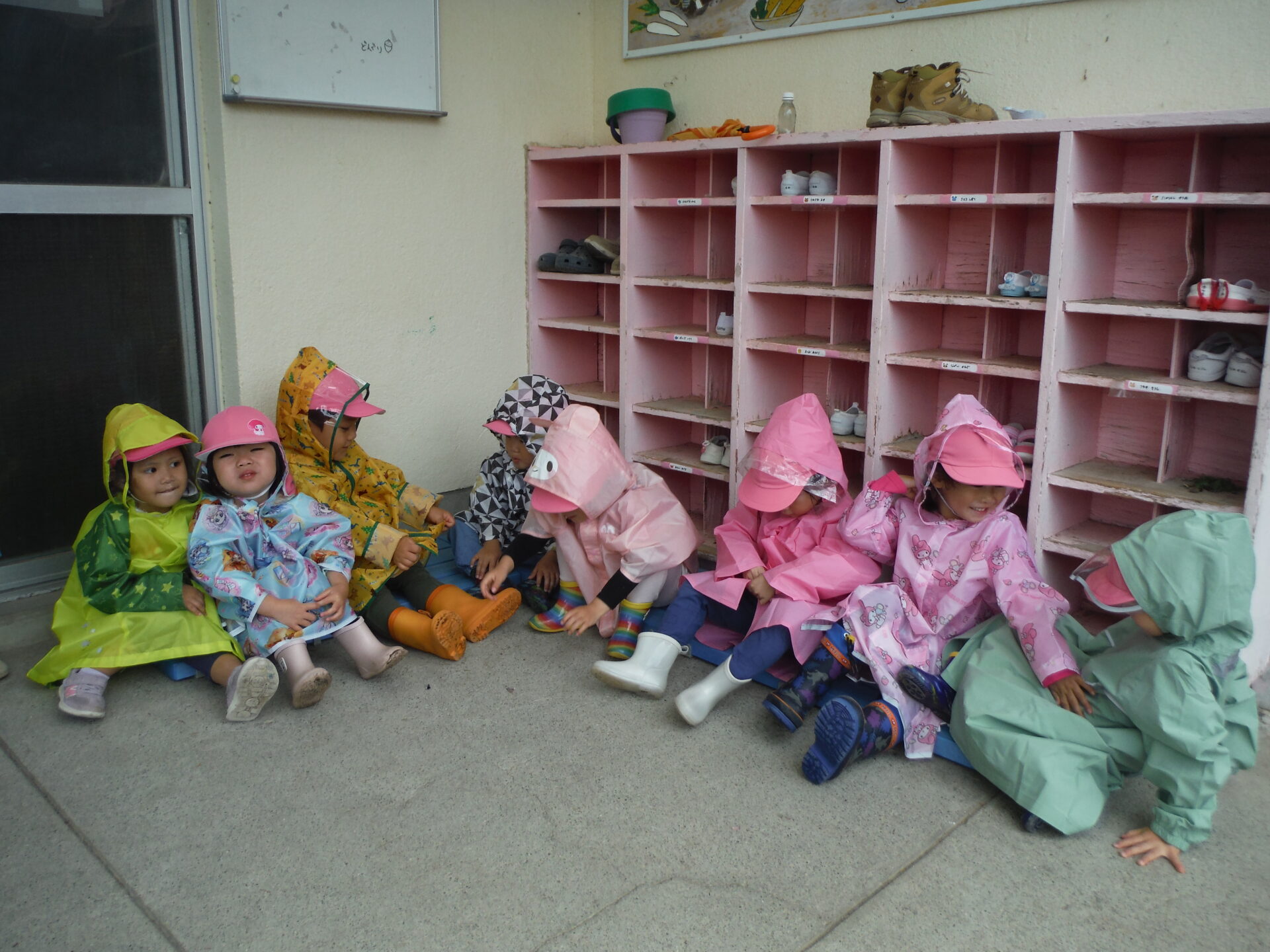カッパに当たる雨の音を聞いたり、雨の日は戸外へ出れないのでなんだか特別なことをしているようでワクワクしたりして出かけました☺