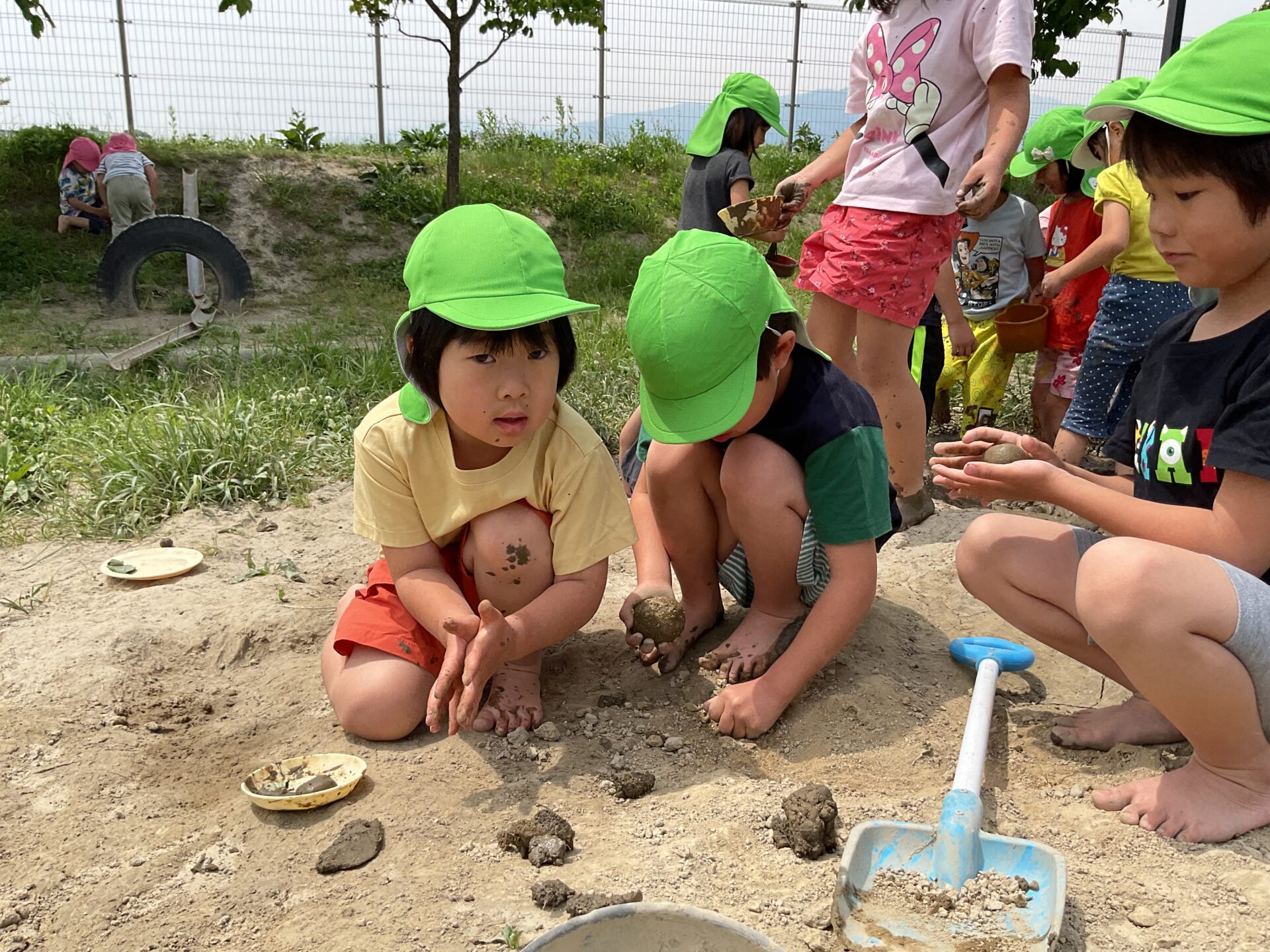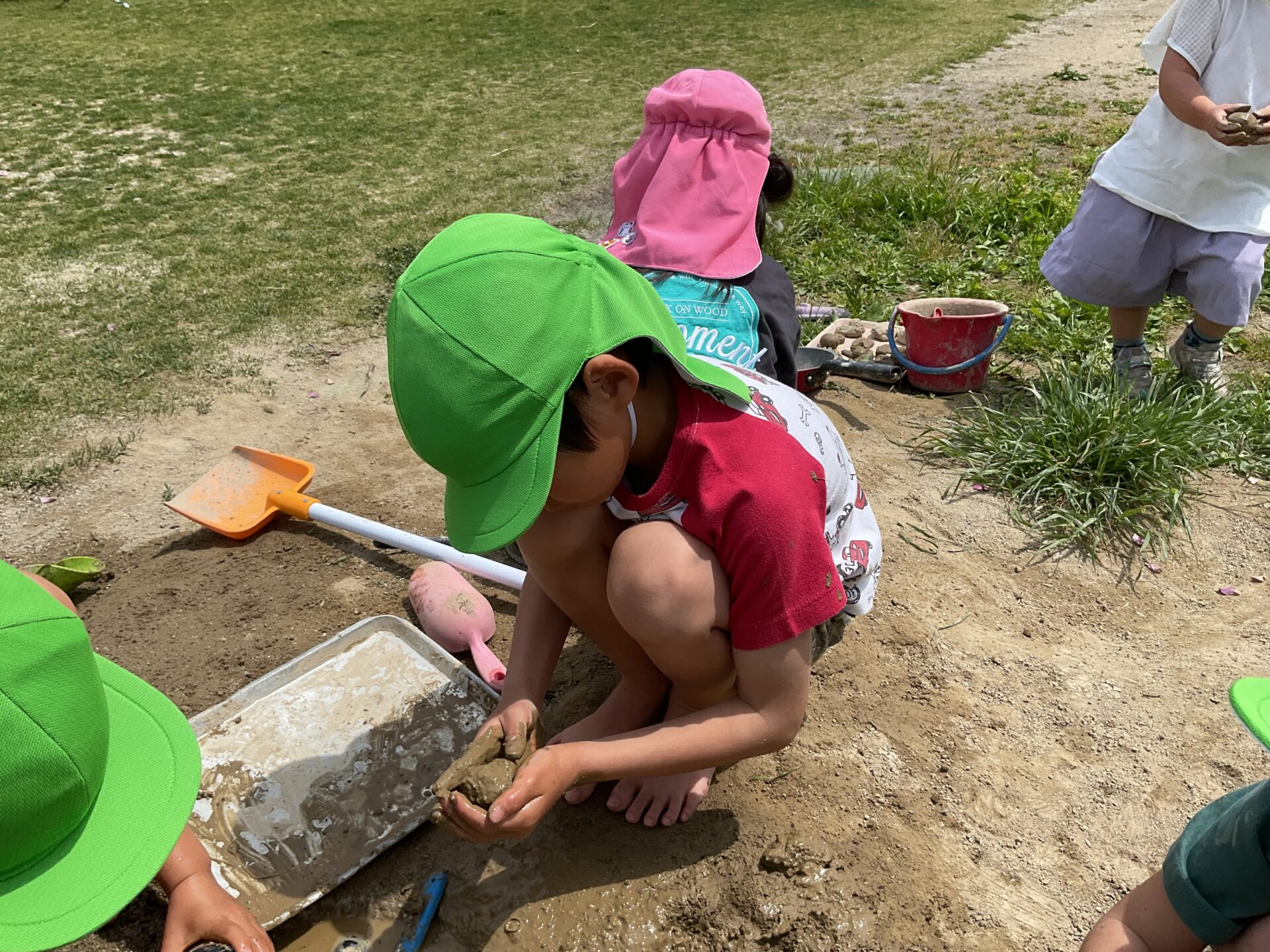 この泥だったら作れるかな?と、硬い泥団子作りをする子もいました。