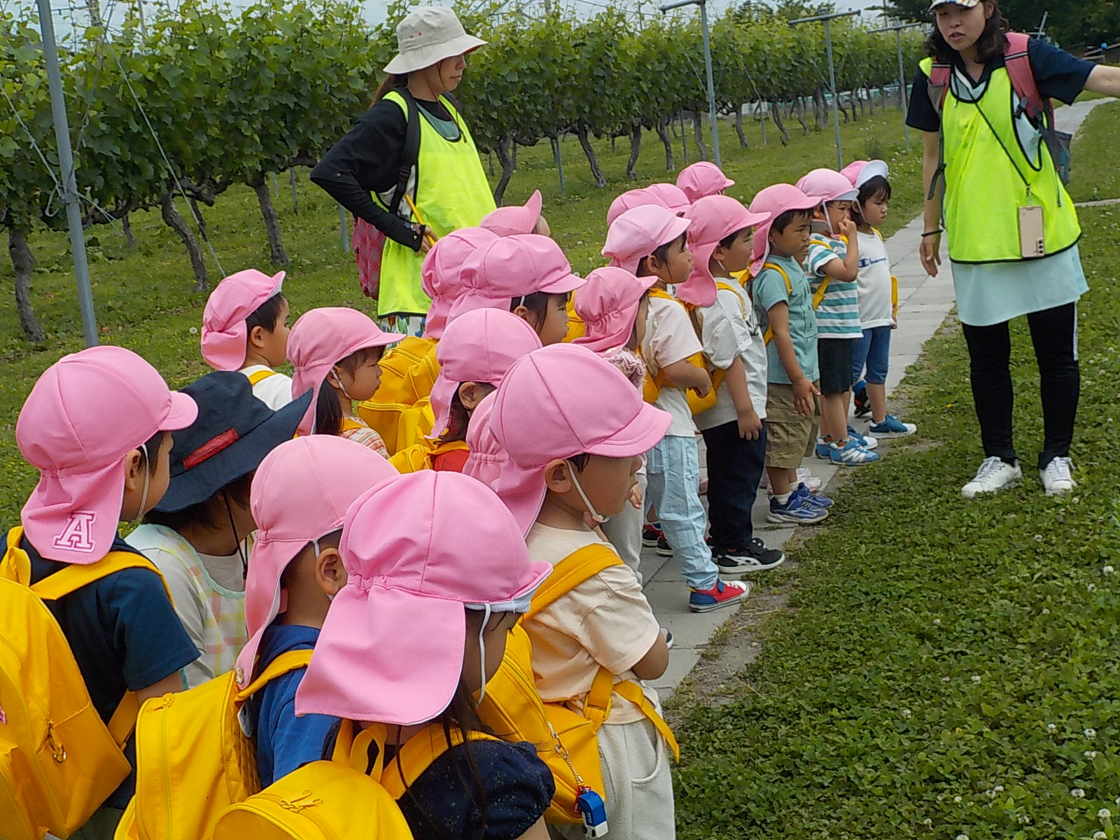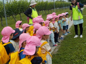 地域の交流を通して、挨拶を交わすことの学び、動物との触れ合い、野菜やぶどう栽培の生長を近くで見て、園外にある様々な興味や関心の幅を広げていってほしいです。