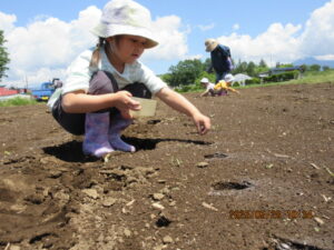 卒園児の保護者、小池偉織さん指導のもとで行われるひまわり畑づくり。