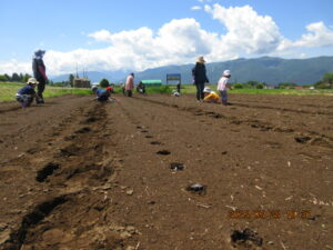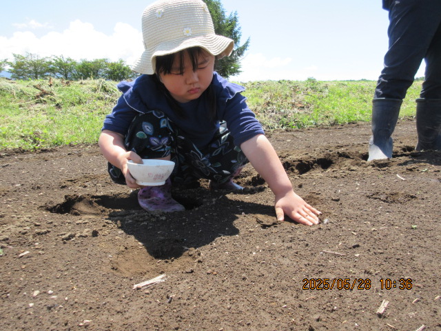 460平方メートルの畑に掘られた小さな穴に、子ども達が