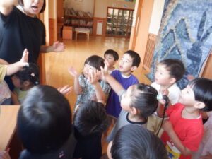 「蝶々さんどうしよう…」早速みんなで話し合いです。
