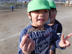 年長さんが楽しんでいると、年中さんも一緒になって楽しんだ朝の出来事でした。