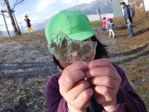 雨上がりで見るくもの巣と、霜で白くなったくもの巣の違いを知った子ども達。どちらもきれいで、子どもの目線での発見が多いと思いました。