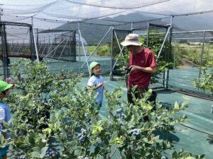 地域のブルーベリー農園の方からお誘いいただき、ブルーベリーの収穫体験をしに行ってきました。