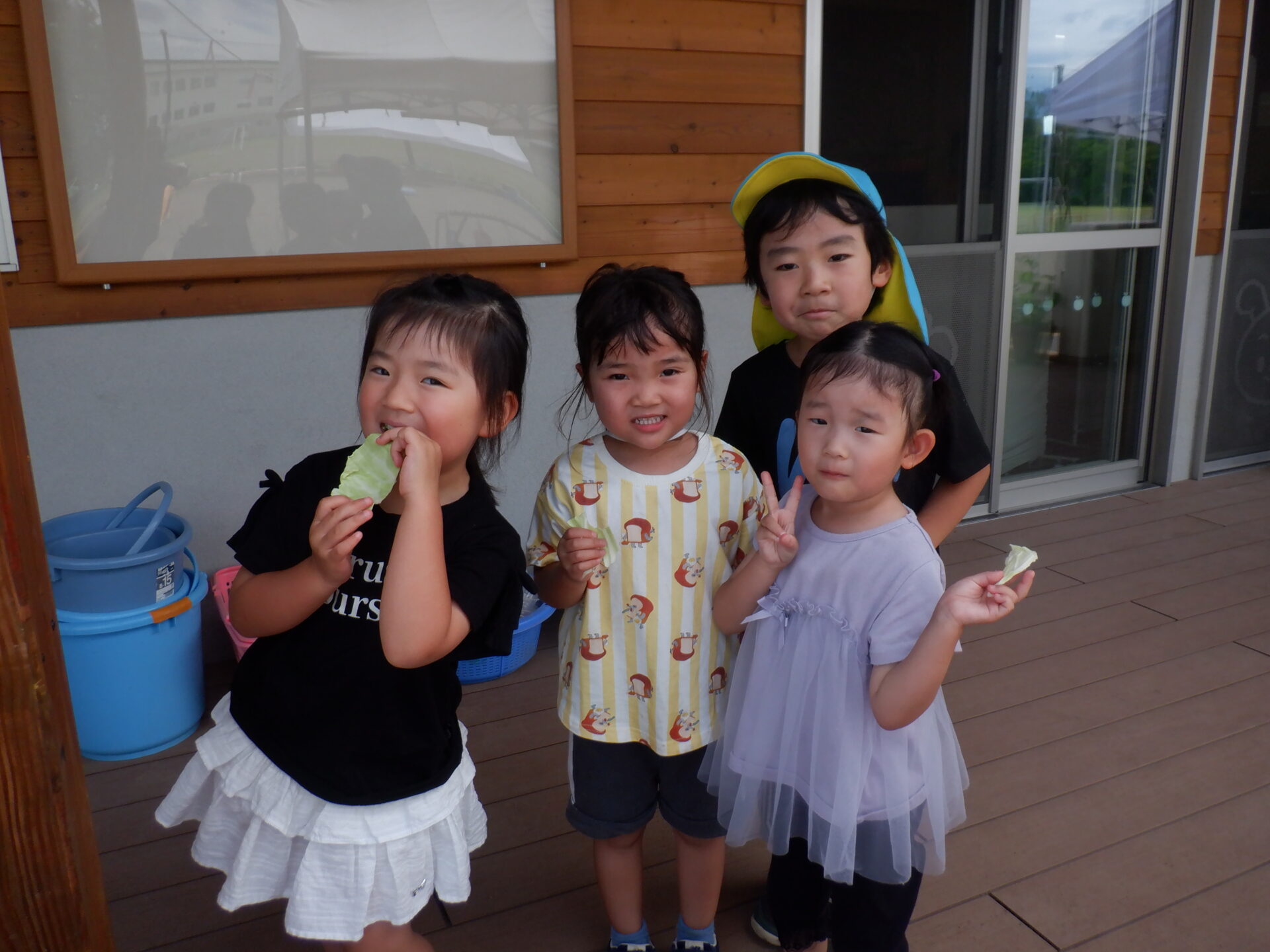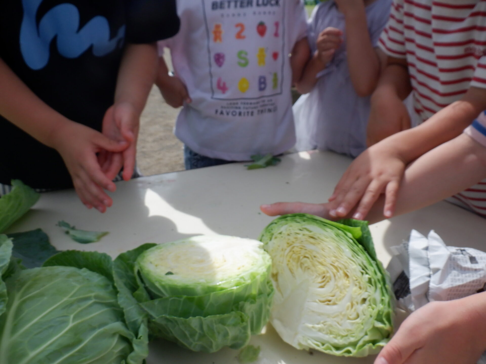 キャベツの収穫祭!触れて遊んで、おいしく食べて、大満足の子ども達でした!