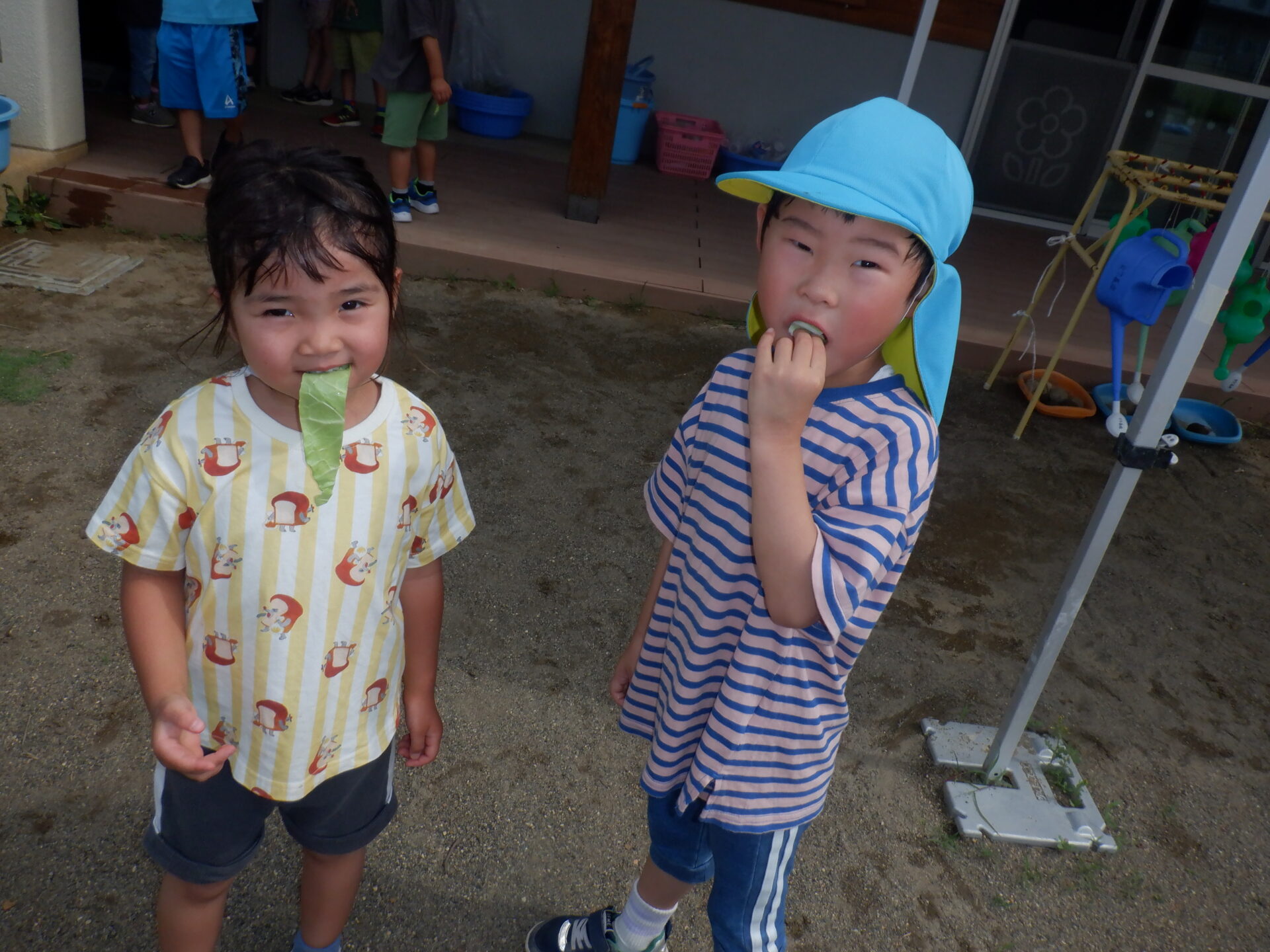 葉っぱを取ったとき「うわ!!虫だ!」「カナブン?なに?」