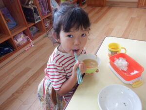 キャベツの味噌汁になりました。「味噌汁、おいしい!」