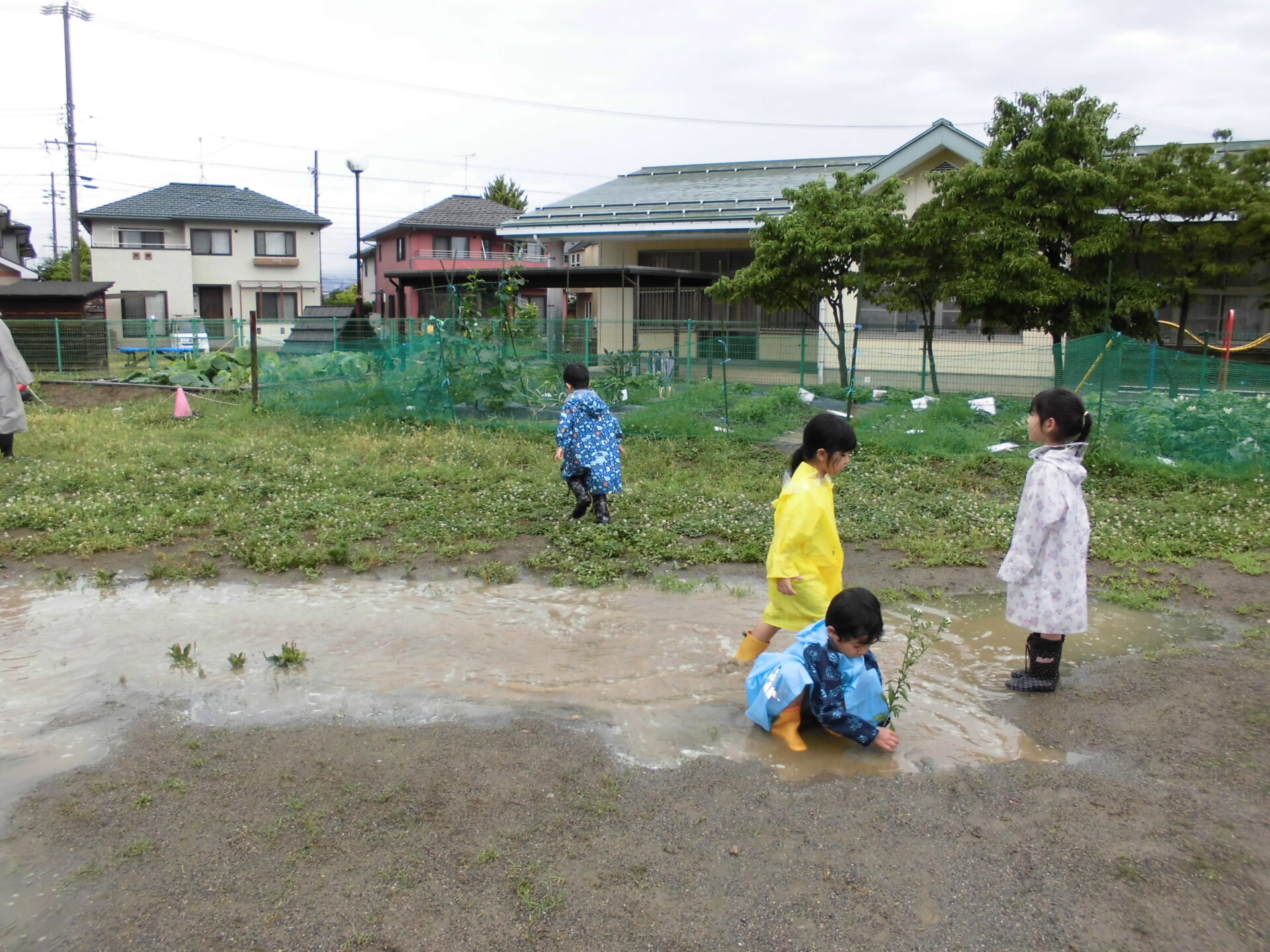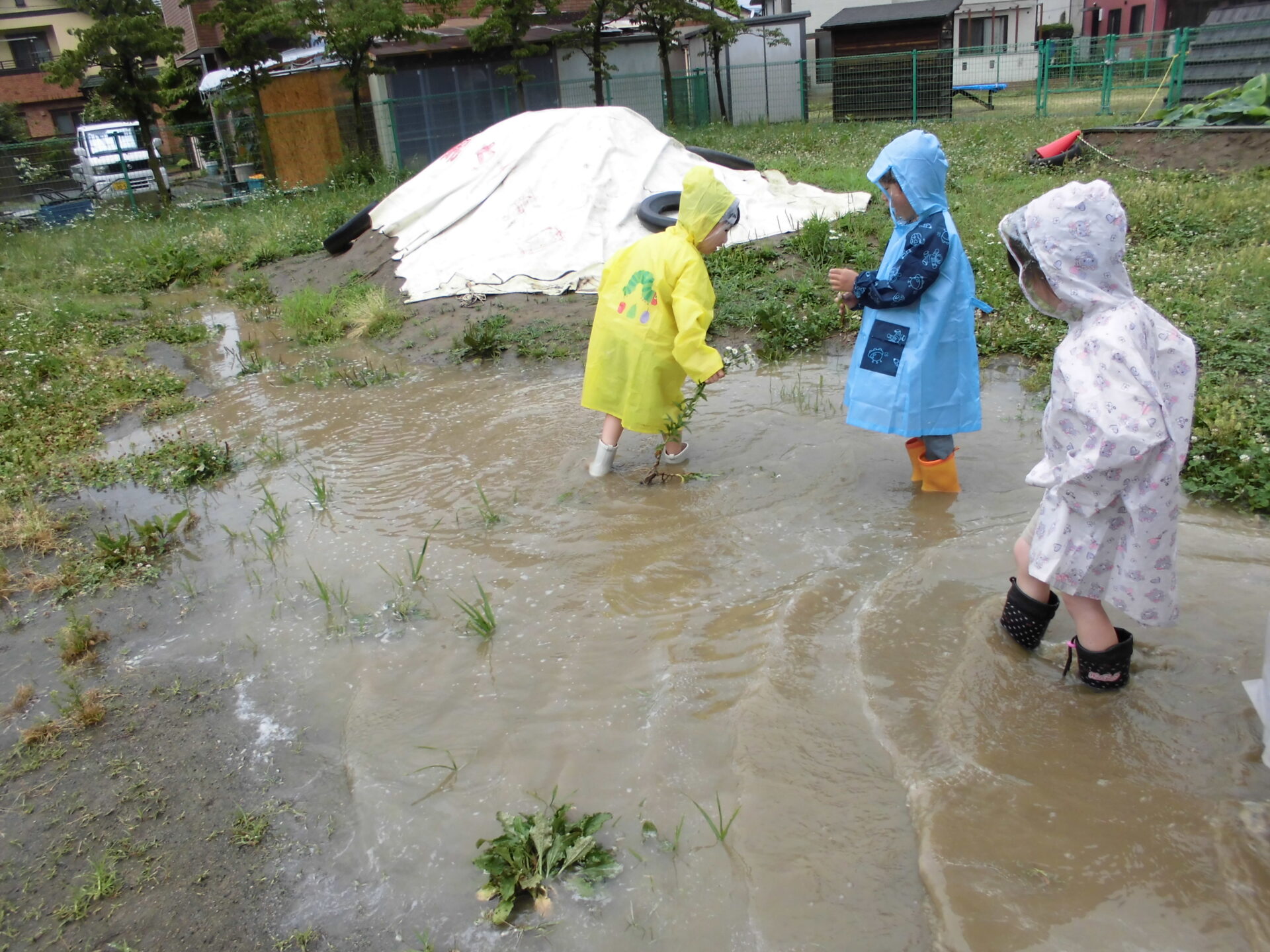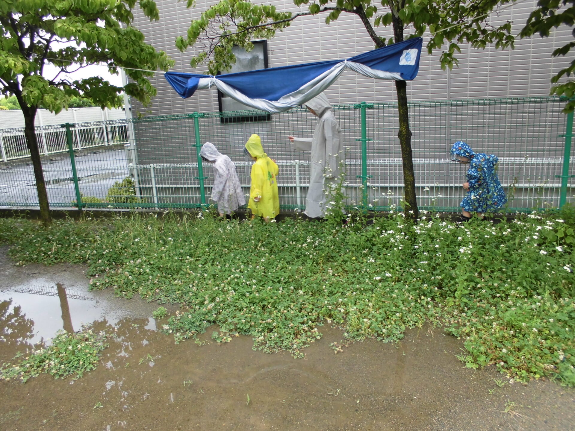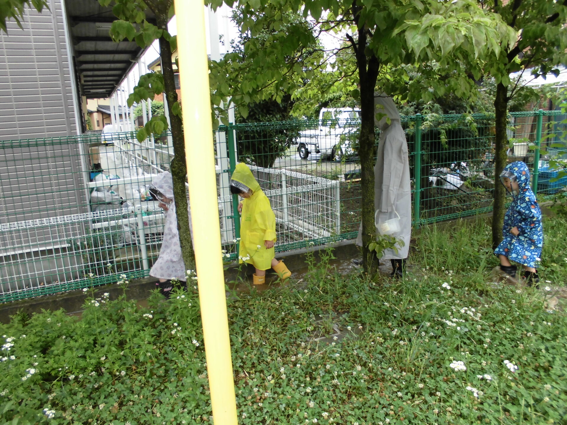 雨の中、ドキドキして園庭の様子を見に行くと・・・