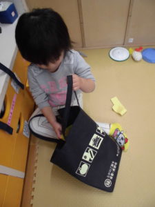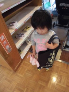 それを聞いた2歳児さんはすぐにお出かけの準備にとりかかりました。